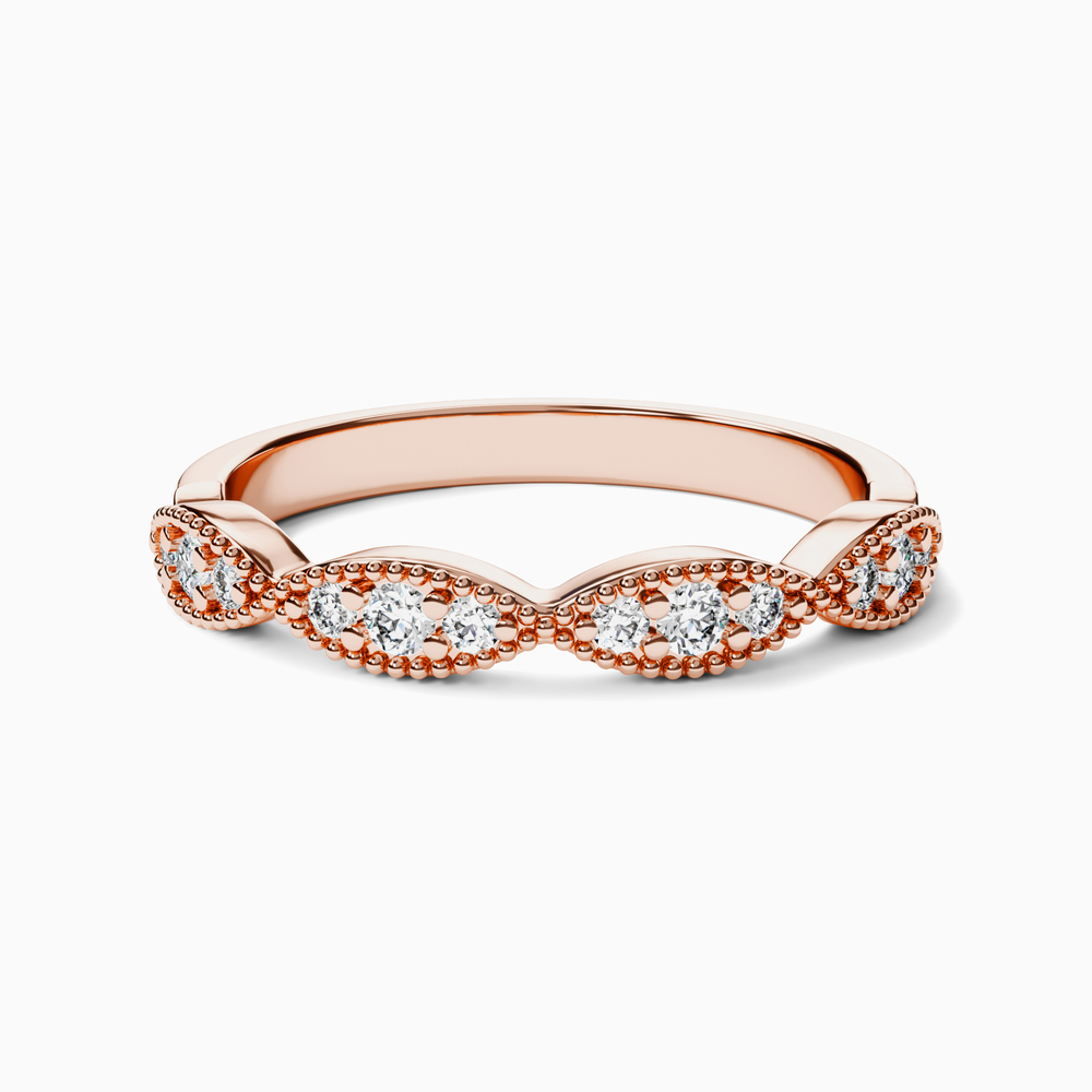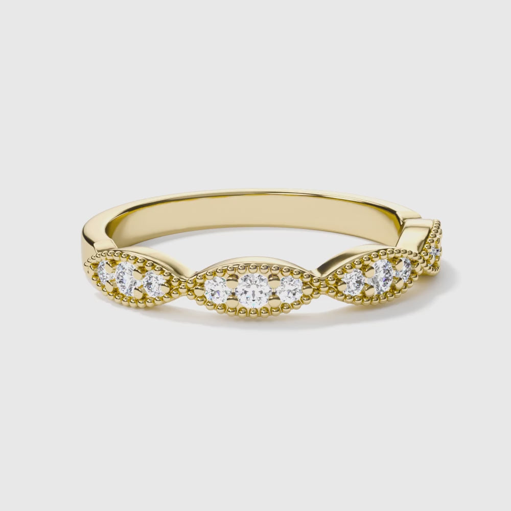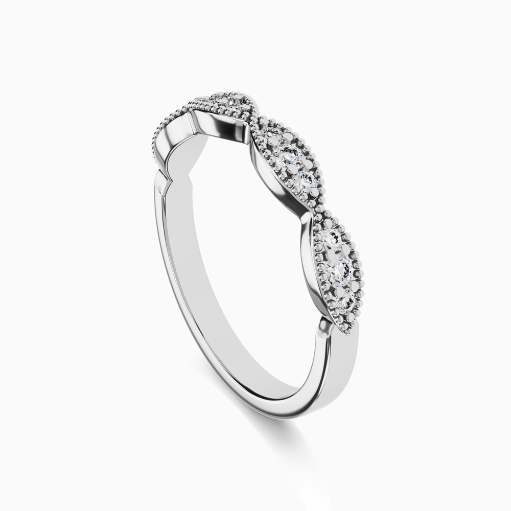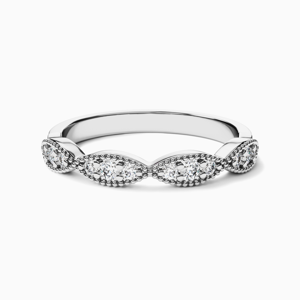 Immortalisez votre amour avec cette bague de mariage avec diamants, bords dentelés et détails millegrains. Chaque diamant éthique est monté avec le plus grand soin par les experts joailliers d'Ecksand pour créer un bijou fascinant qui reste fidèle à sa promesse de durer éternellement.