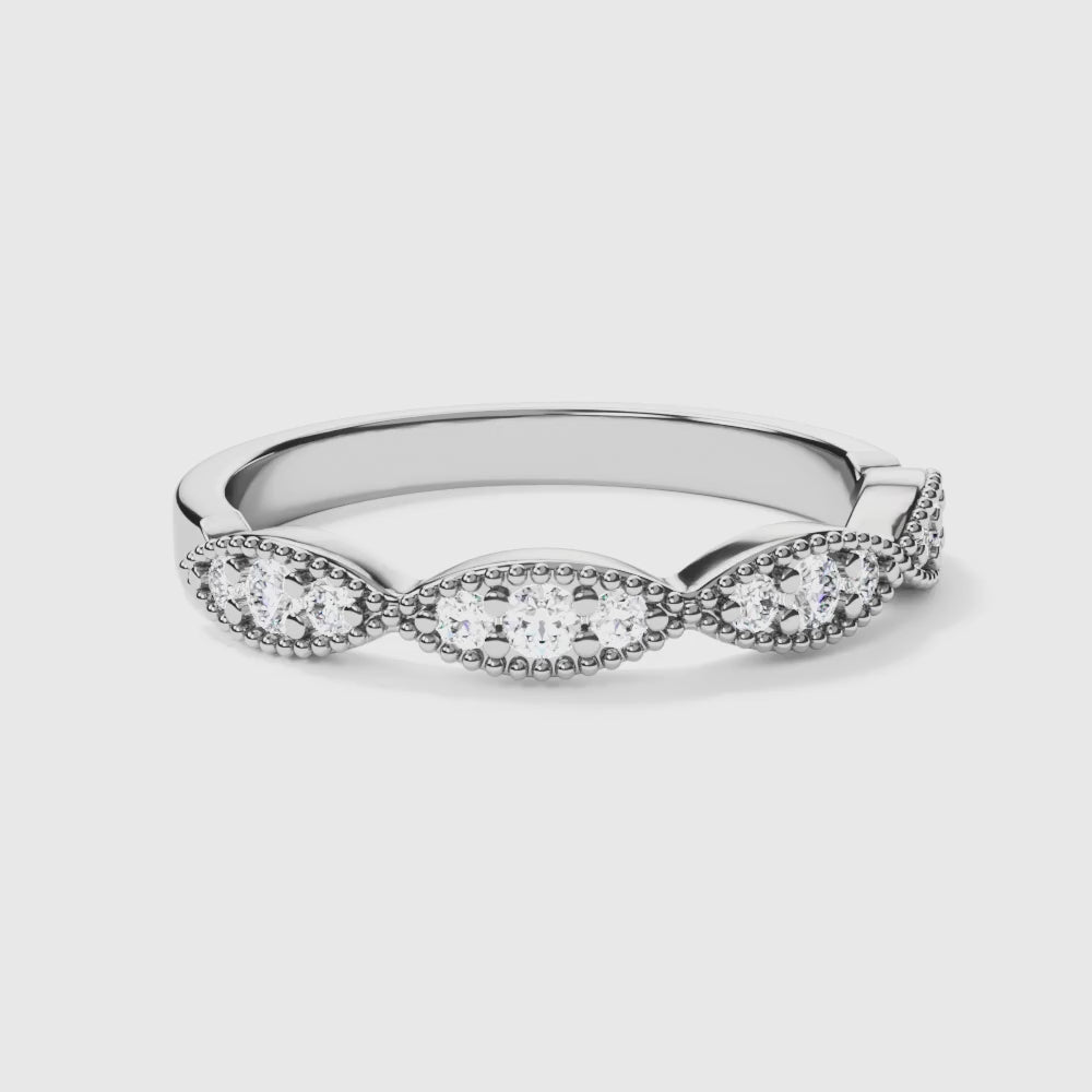 Bague de mariage avec navettes et détails millegrains