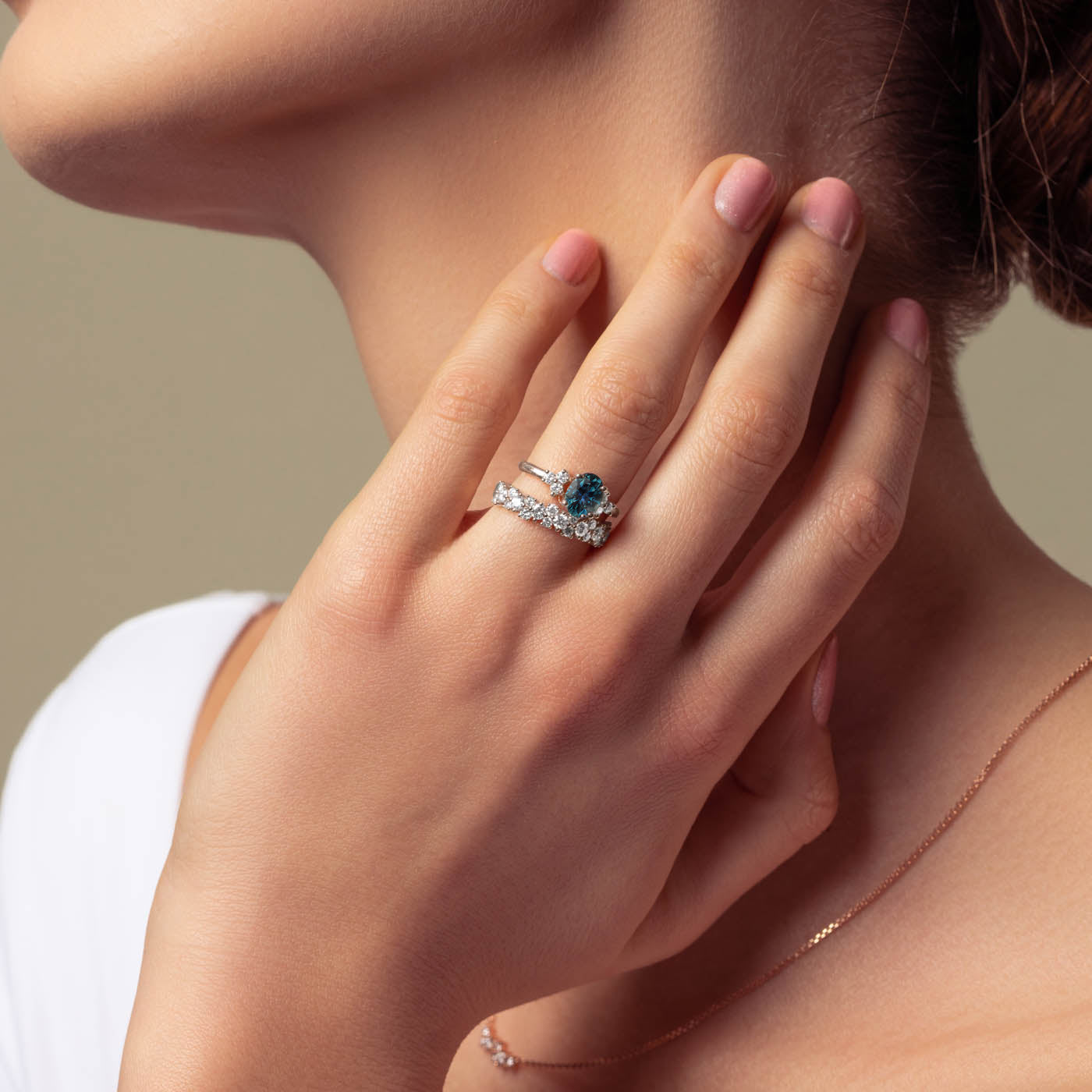 Thoughtfully crafted to sit comfortably on the hand, the ring’s proportions highlight each sapphire without overwhelming the piece. The result is a refined expression of colour, continuity, and intention; perfect on its own or stacked alongside other bands.