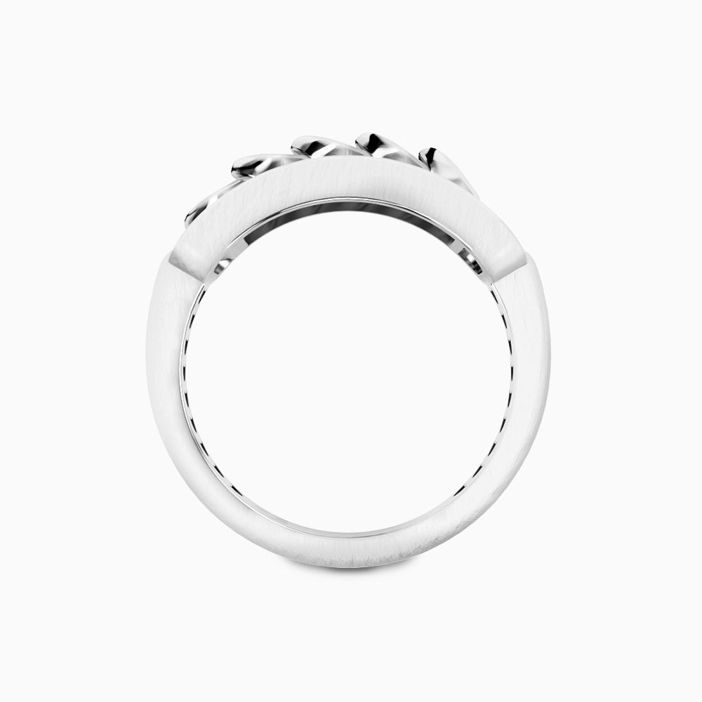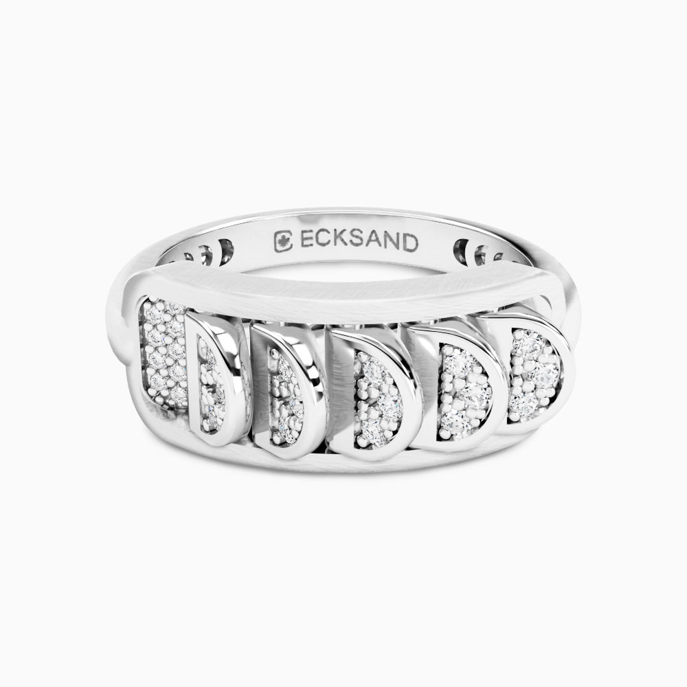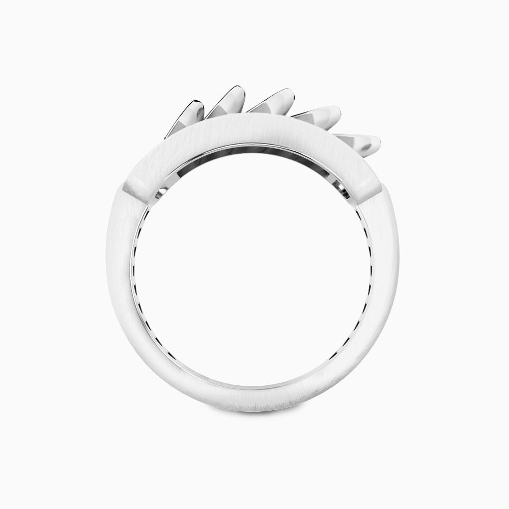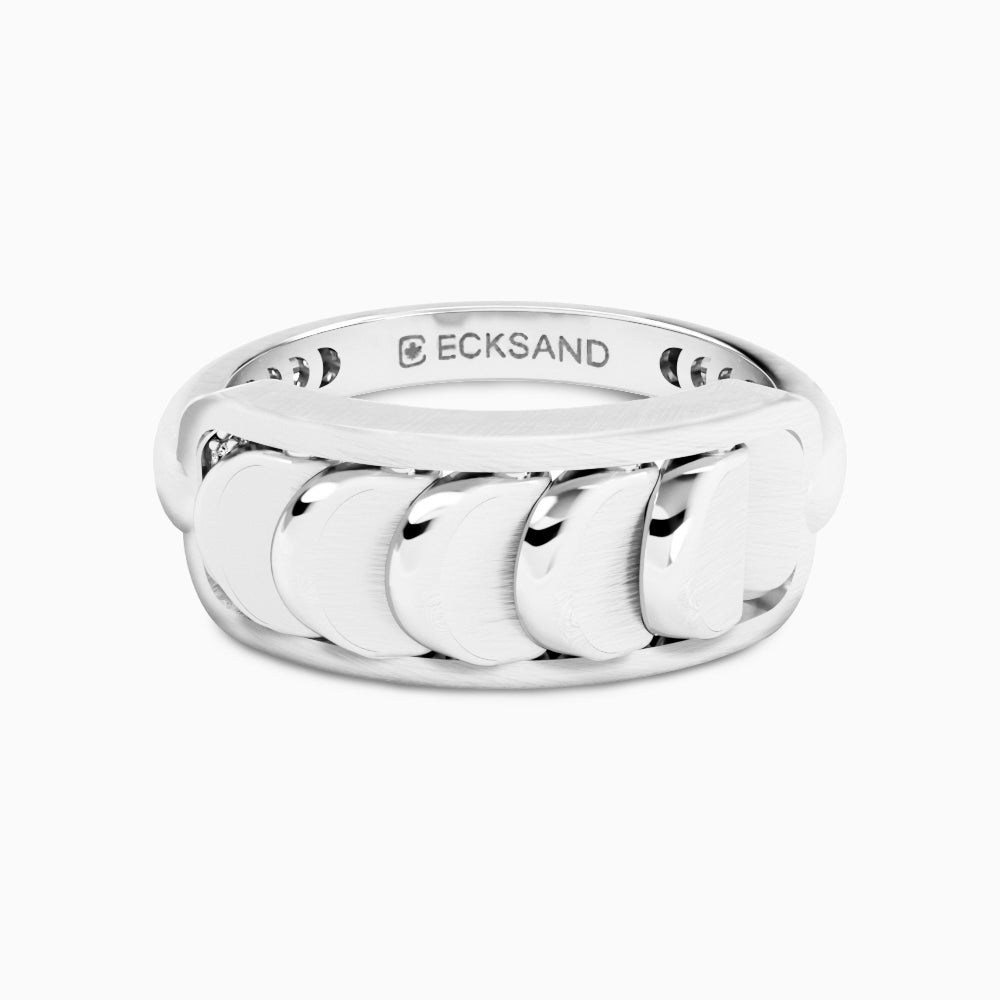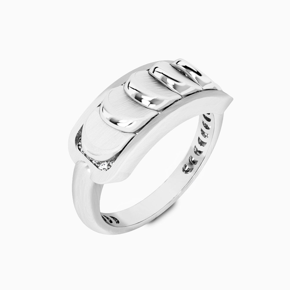 Brushed White Gold Ring with Reversible Diamond Pavé Crescents