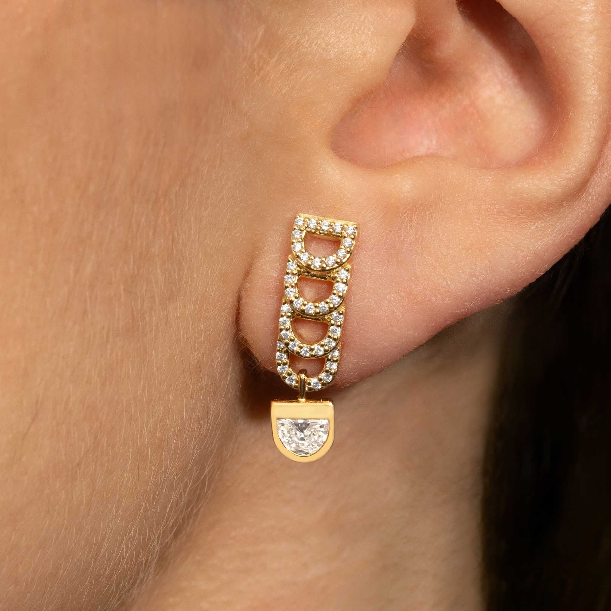 Cascading Diamond Pave Crescent Stud Earrings with Half Moon Diamond