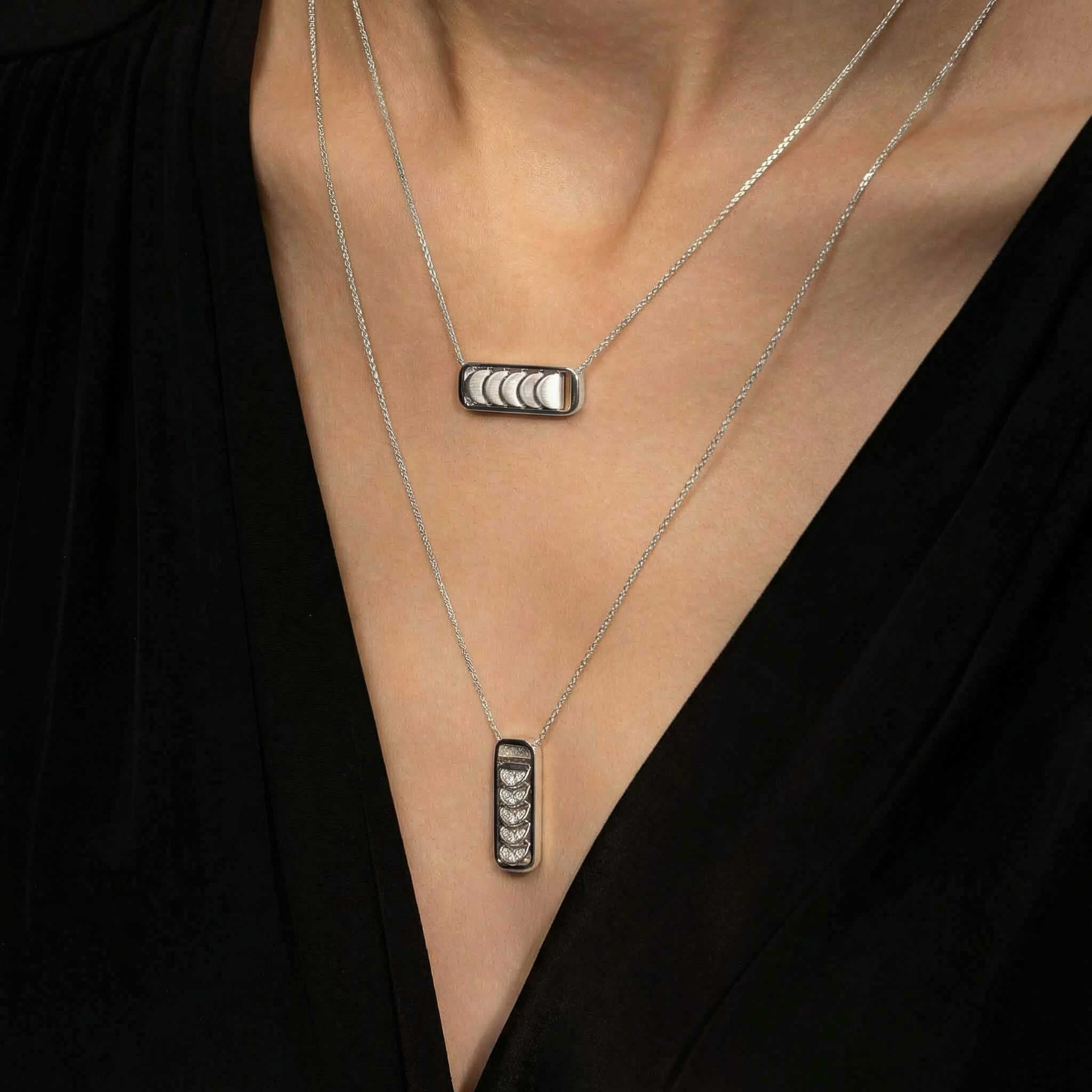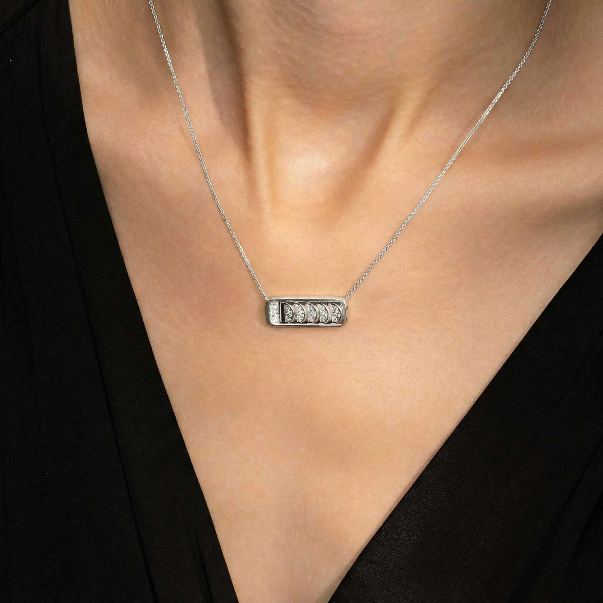 Chain Necklace with Reversible Diamond Pavé Crescents in White Gold