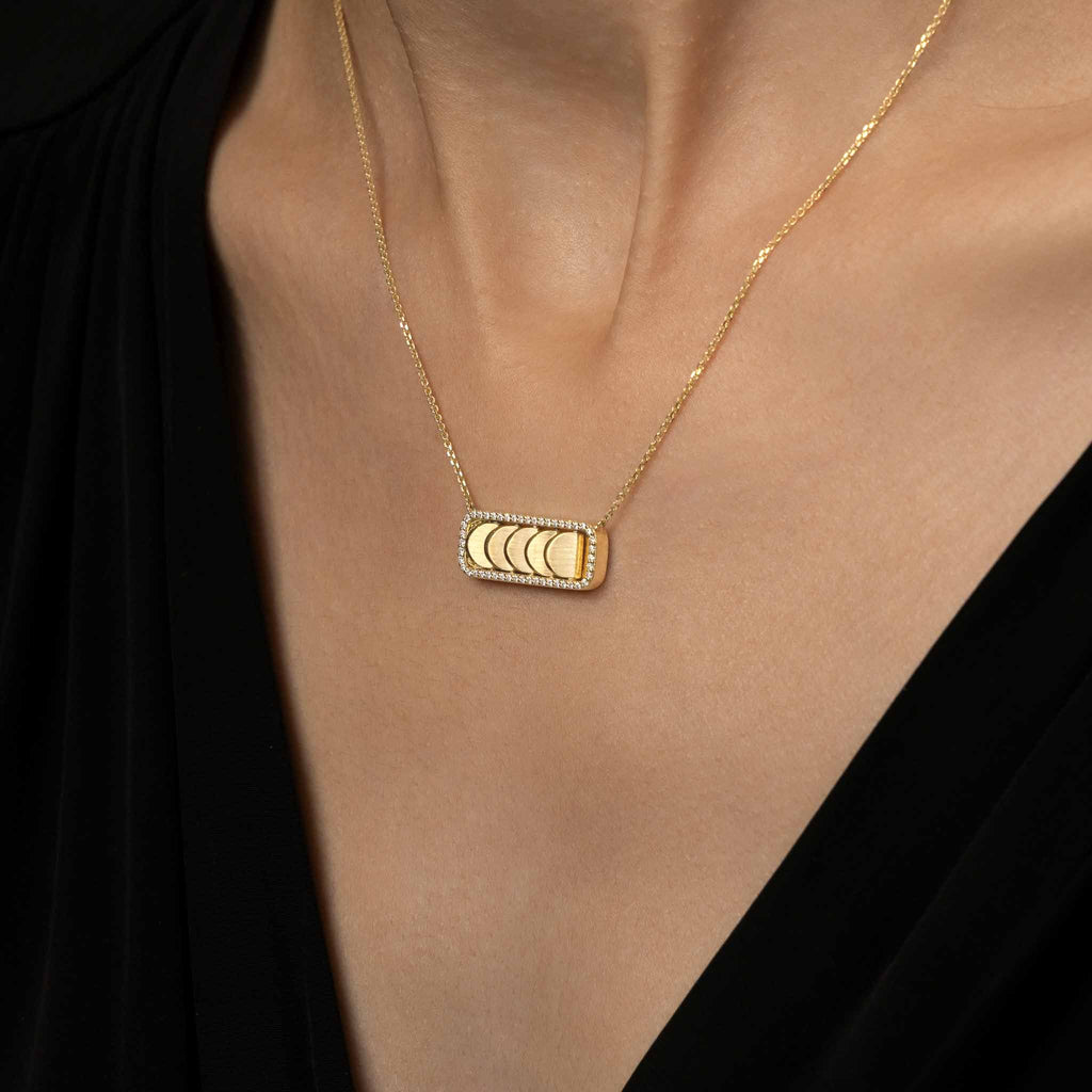 Ecksand's Aura is the embodiment of your own energy. It expands, intensifies, and transforms with you in an empowering ripple effect. This Diamond Chain Necklace with Reversible Diamond Pavé Crescents shifts with you. The signature crescent motif flips seamlessly left to right as the reversible mechanism unveils either signature diamond pave or brushed gold crescents. Conceived by Creative Director Erica Bianchini and brought to life through the precision of Canadian craftsmanship, Aura reflects the Maison’s pursuit of form, innovation, and art of metamorphosis in fine jewelry.