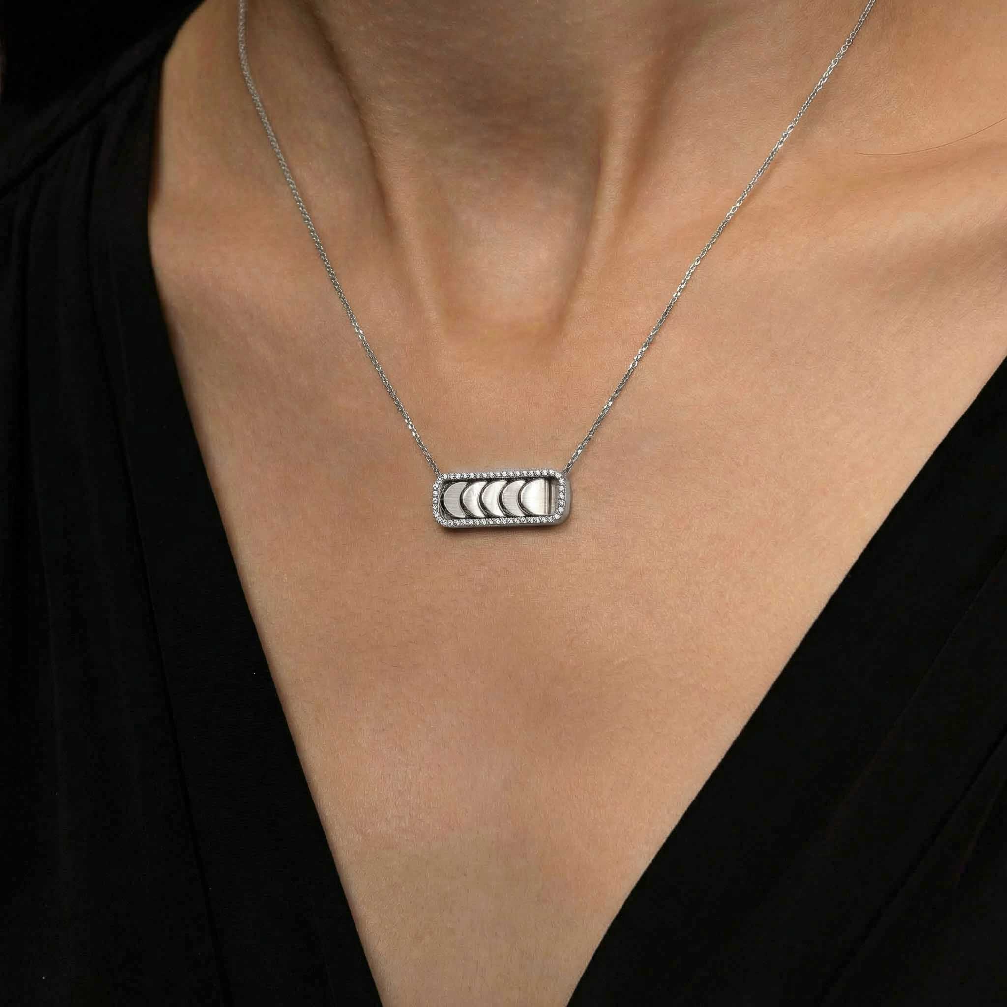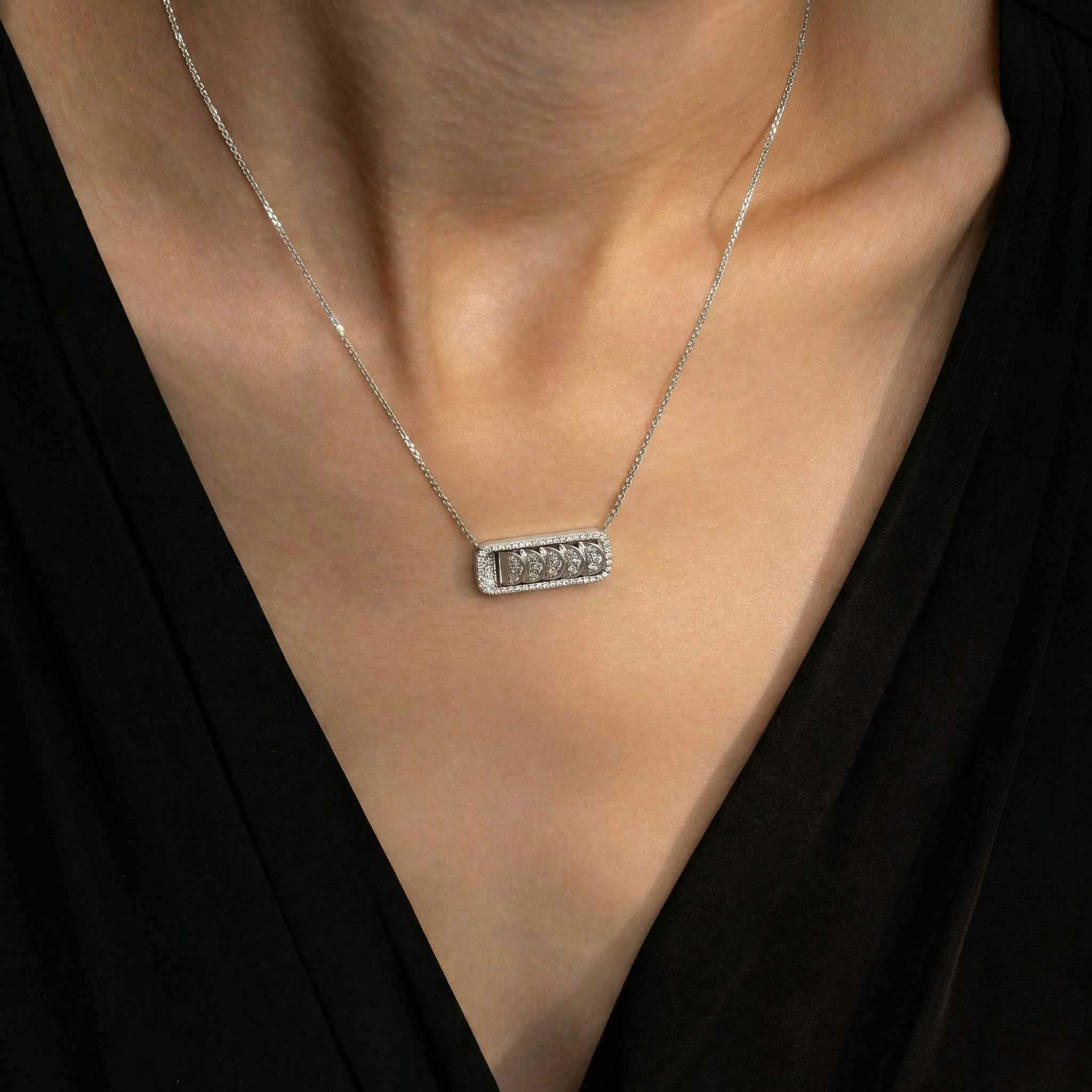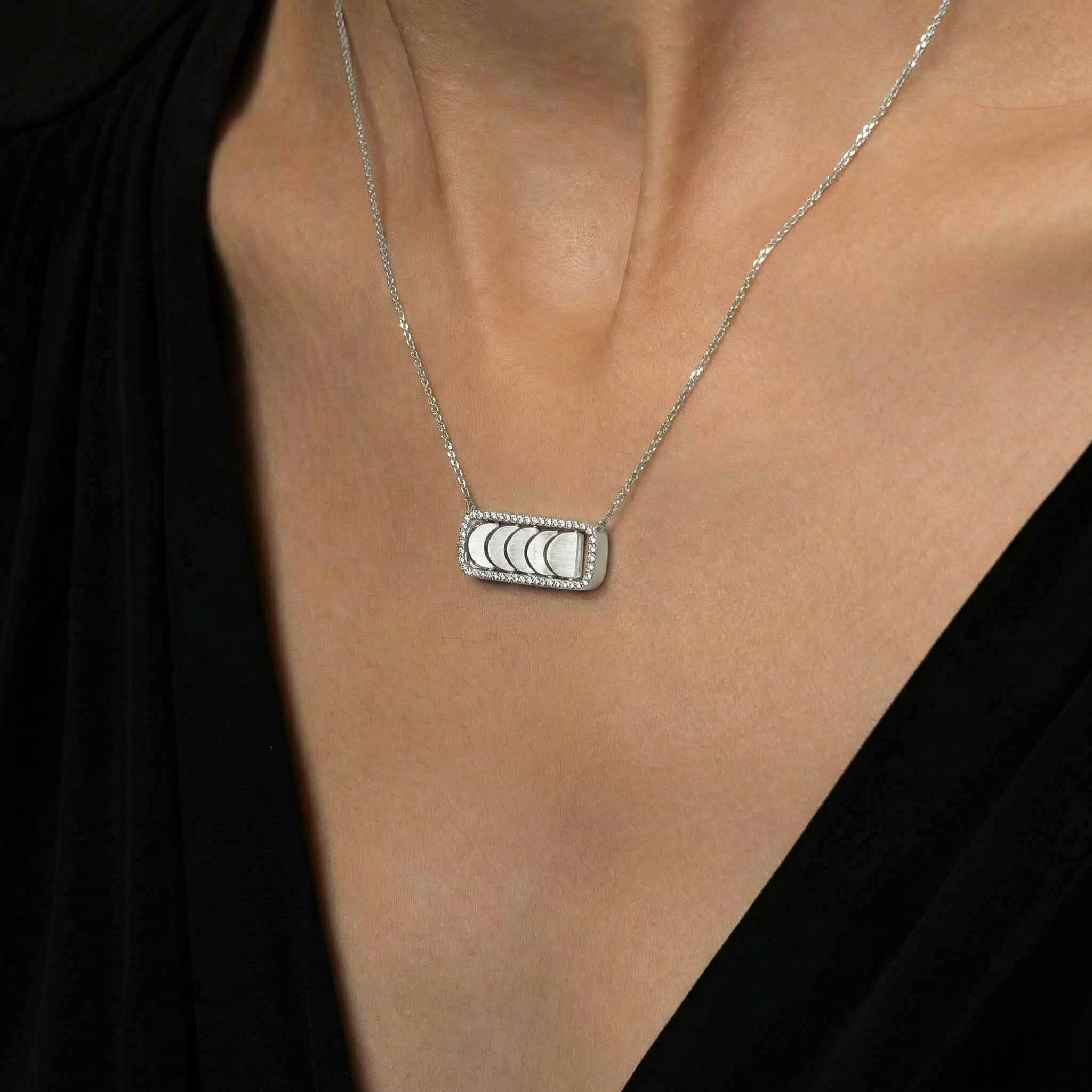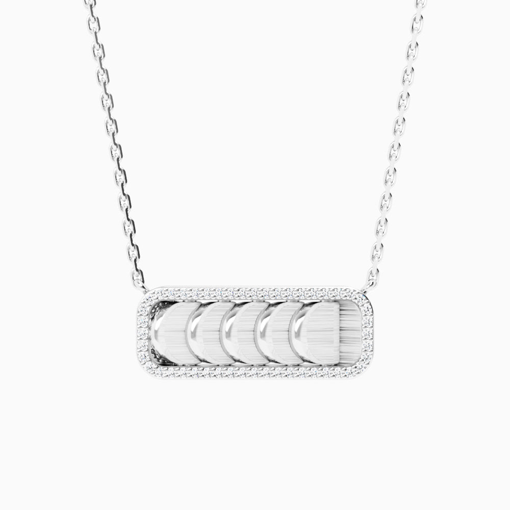 This White Gold Diamond Chain Necklace with Reversible Diamond Pavé Crescents shifts with you. The signature crescent motif flips seamlessly as the reversible mechanism reveals either diamond pavé brilliance or sculpted brushed white gold.