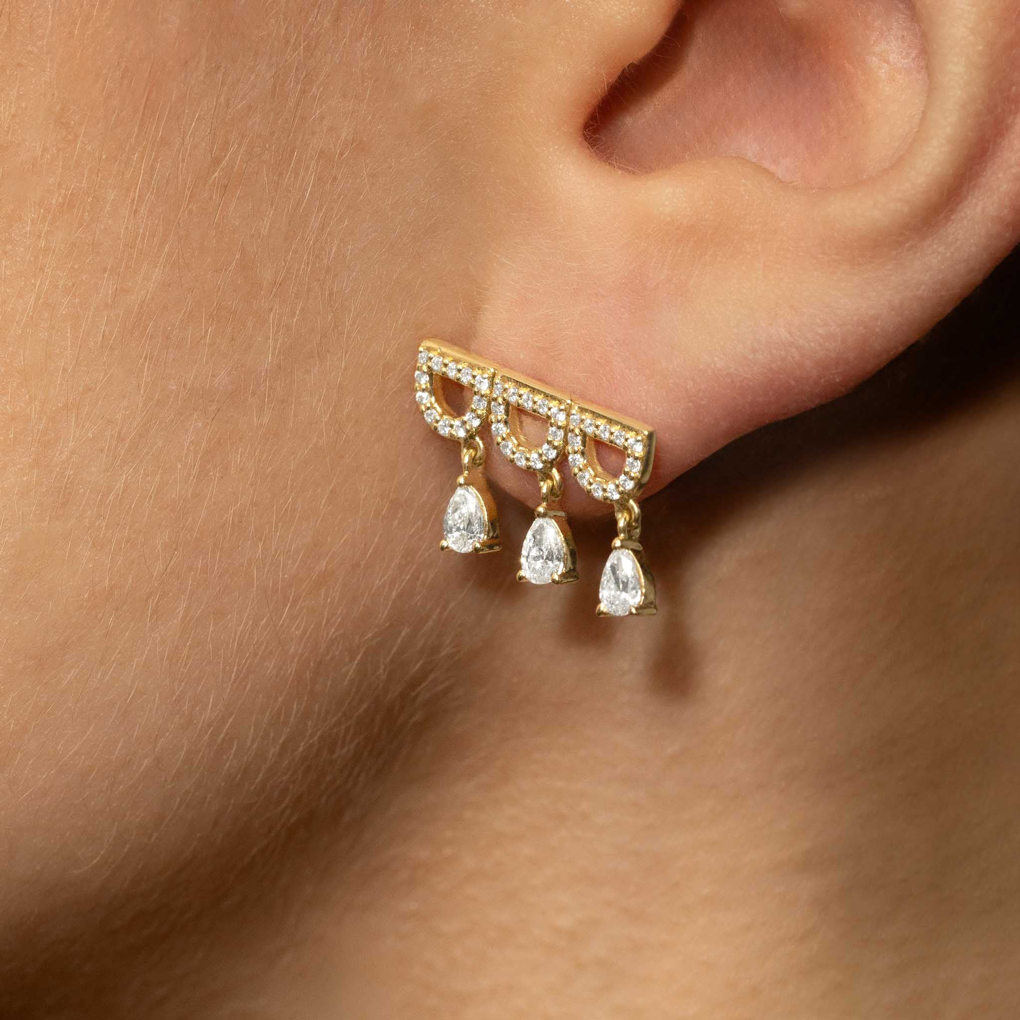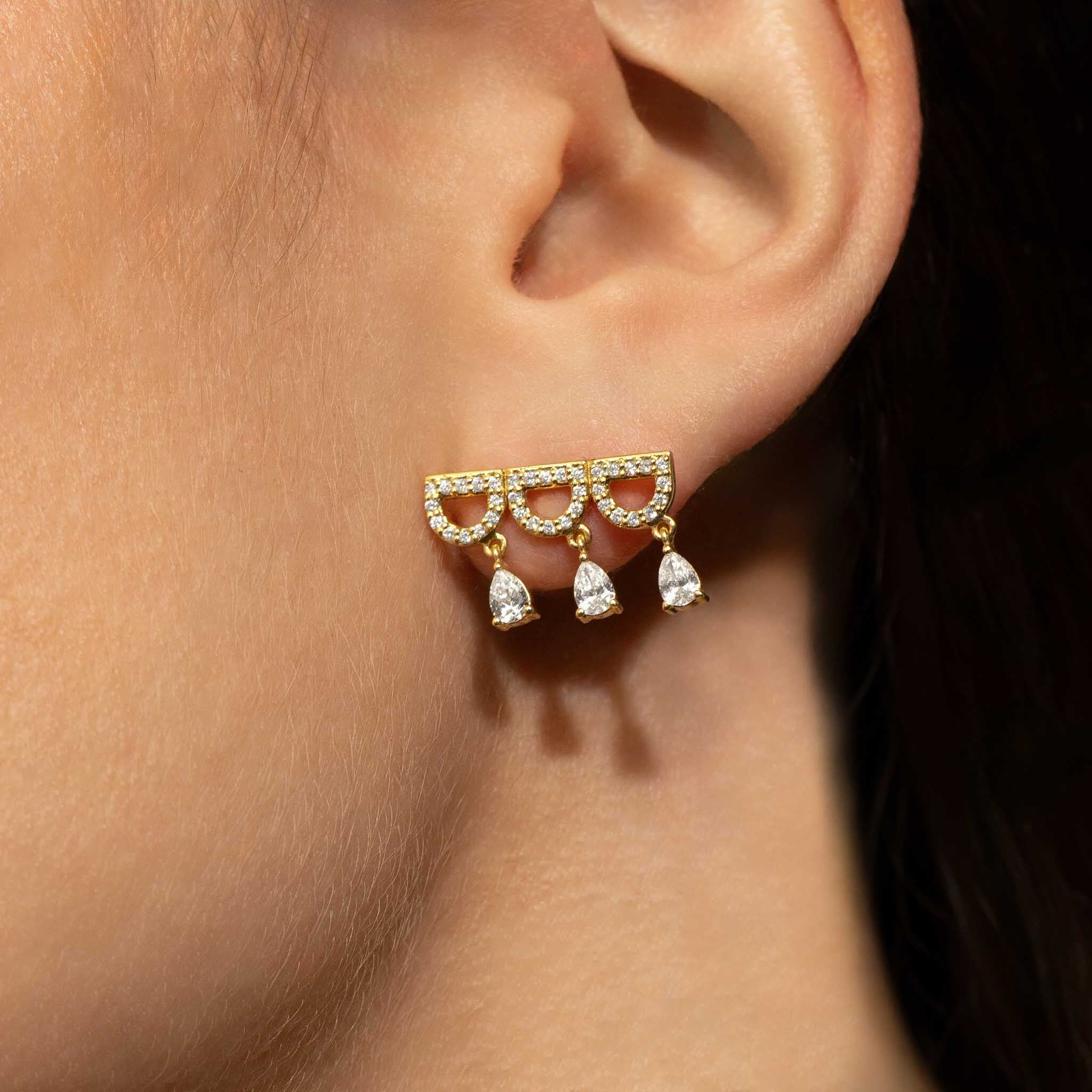 Diamond Crescent Crawler Earrings with Dangling Pear Diamonds