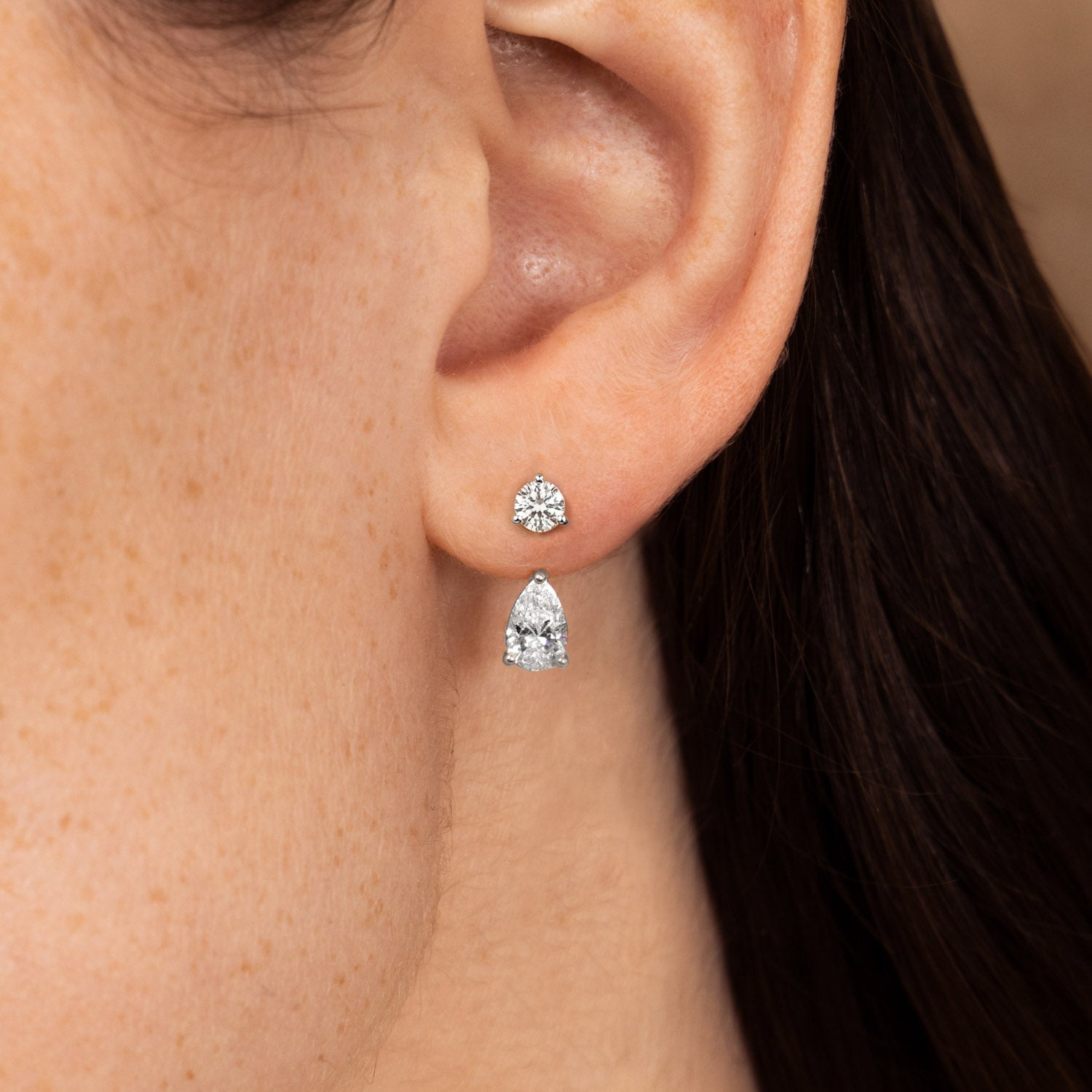 A sight to behold, these Diamond Jacket Earrings draw inspiration from the splendour of old-world elegance. Each ethical diamond is adorned with utmost care and attention by Ecksand's team of highly skilled craftspeople for a mesmerizing result that stays true to its promise to last forever. Entirely versatile, you can wear the round studs on their own or complete the look with the pear-cut jacket. For an even more personalized look, consider pairing the jacket with any other Ecksand studs.