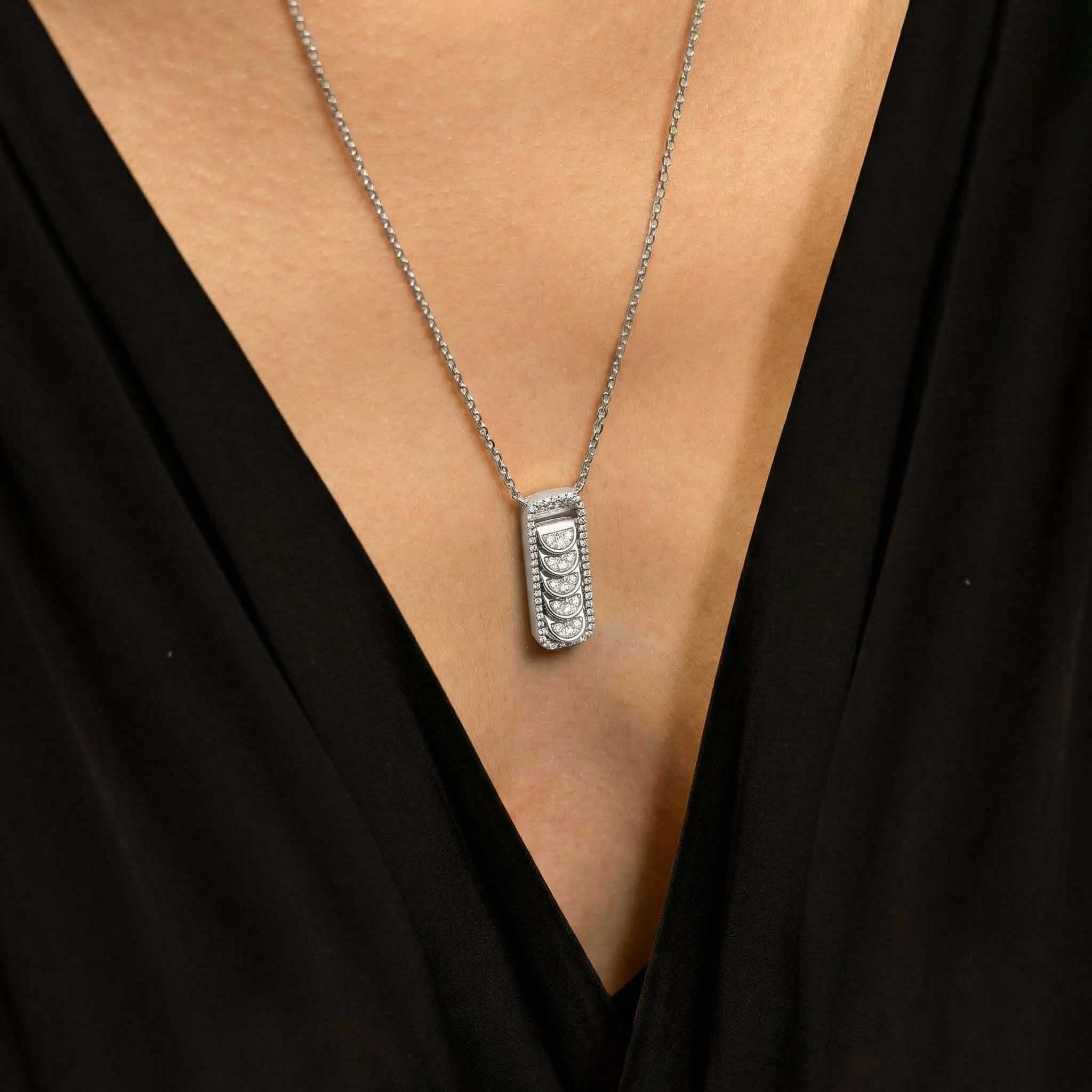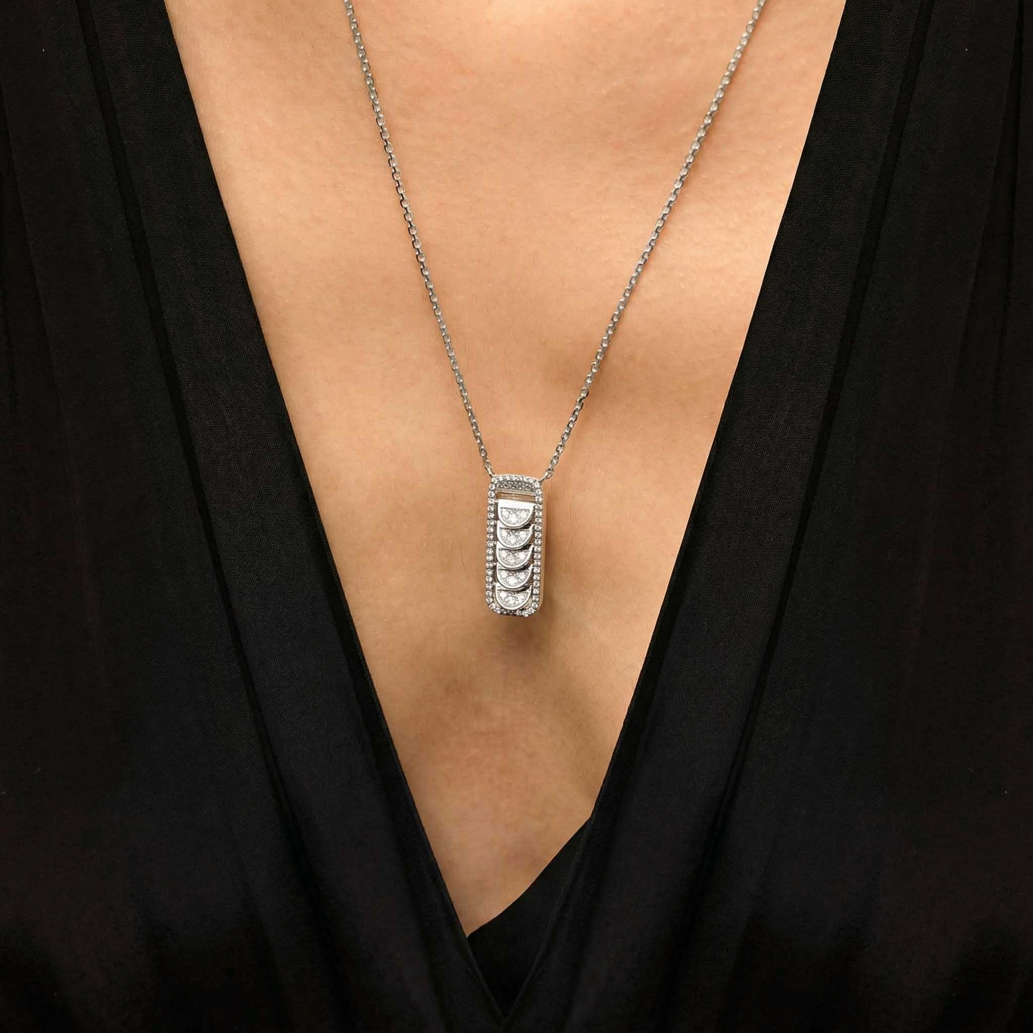 This White Gold Diamond Pendant Necklace with Reversible Diamond Pavé Crescents shifts with you. The signature crescent motif flips seamlessly as the reversible mechanism reveals either diamond pavé brilliance or sculpted brushed white gold.