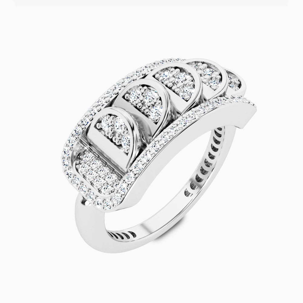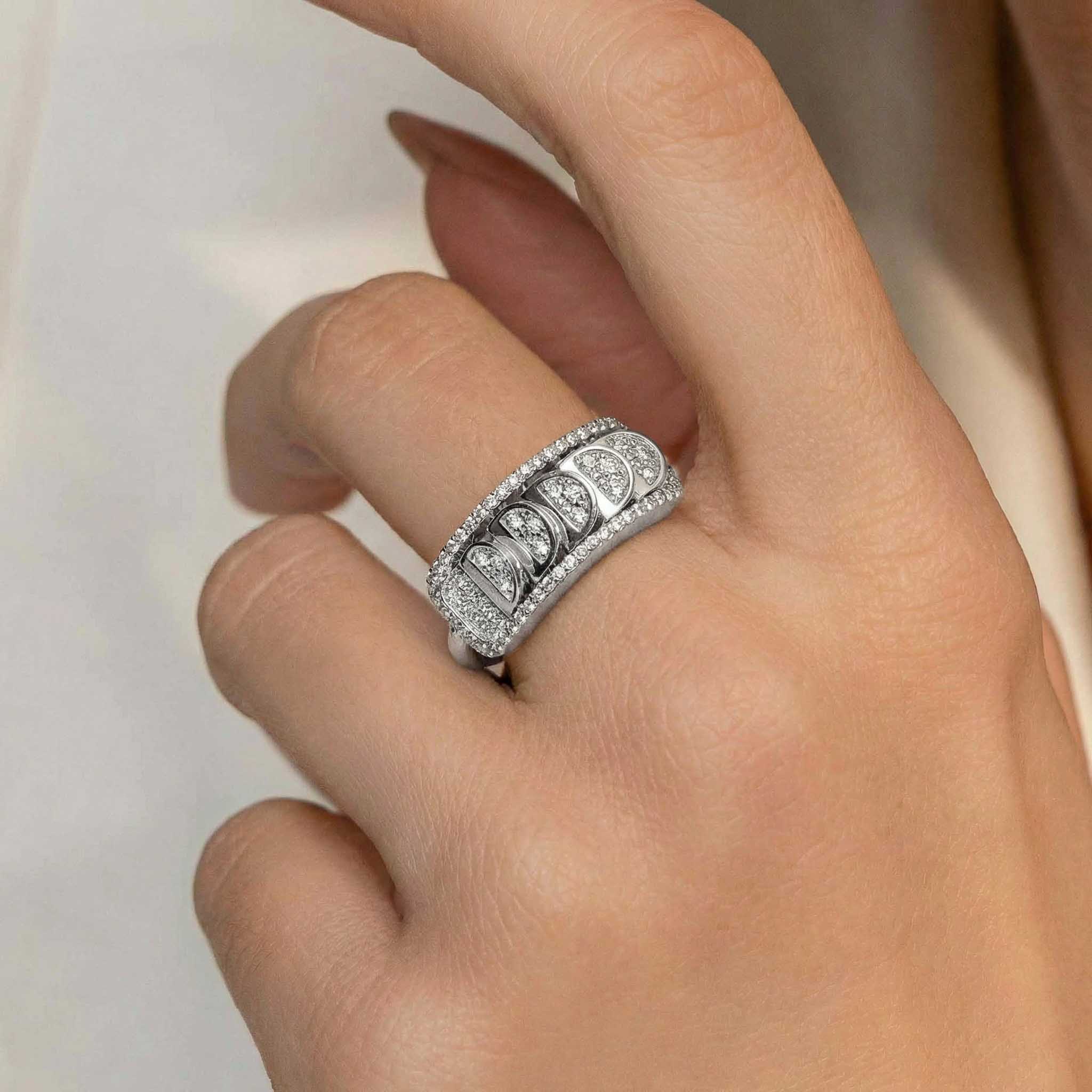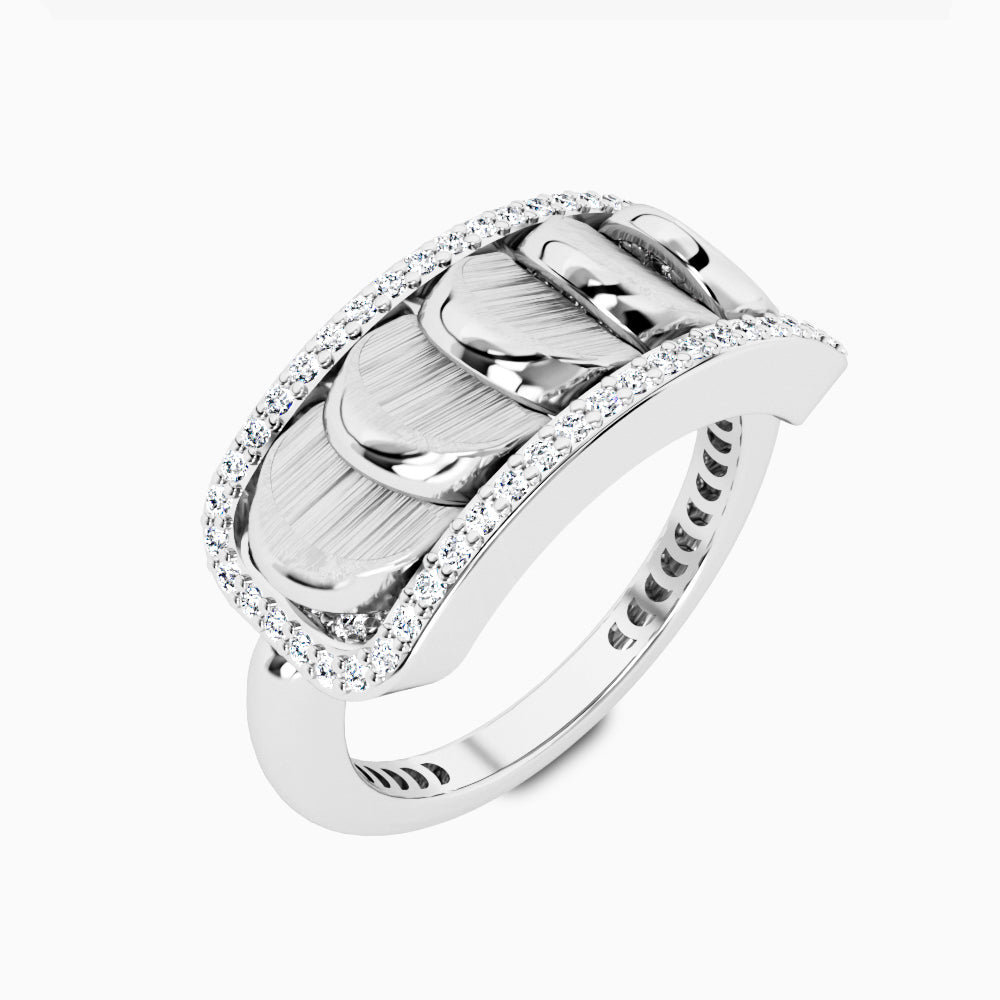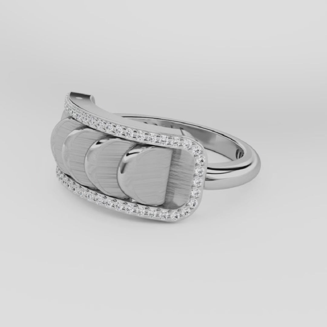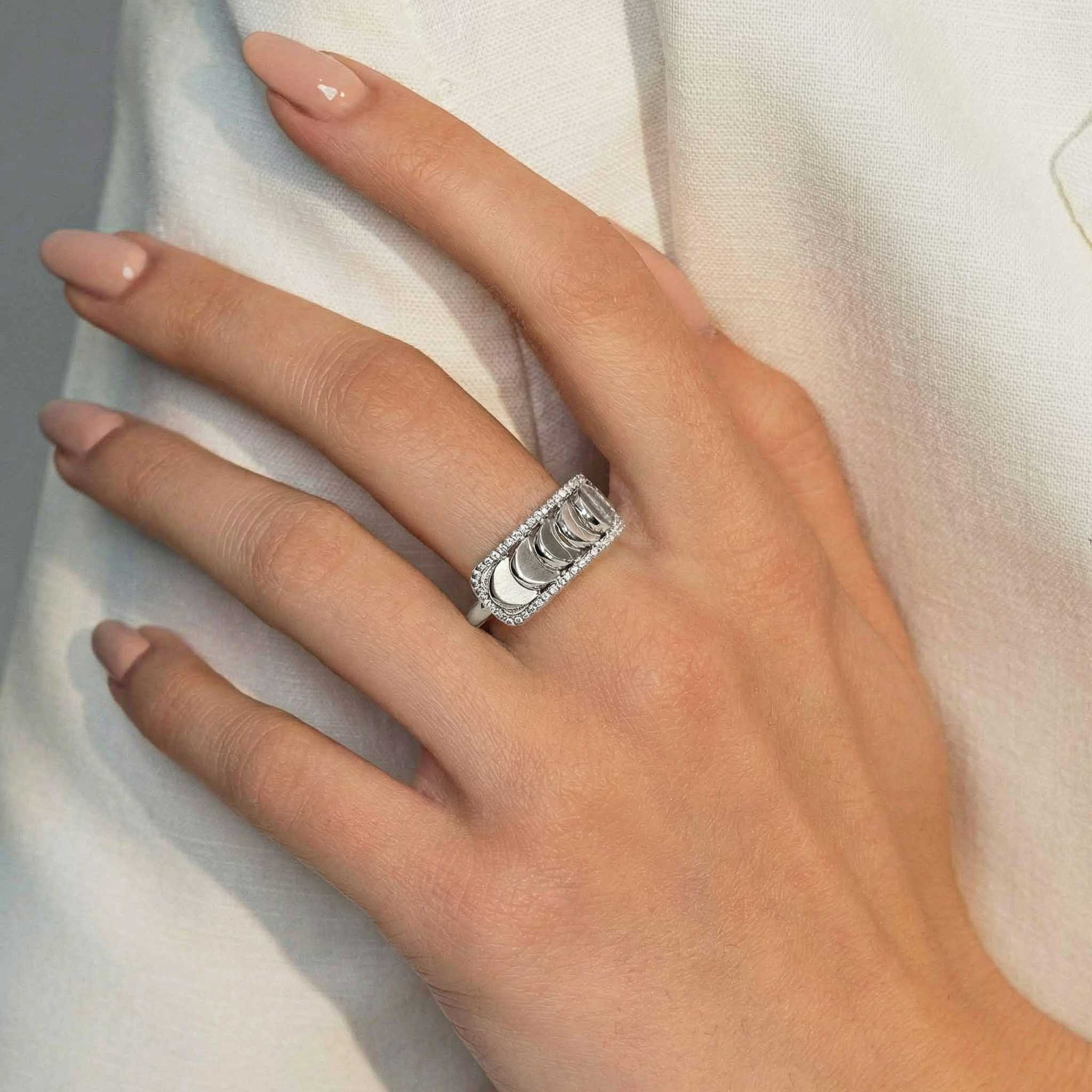 Diamond Ring with Reversible Crescents in White Gold with Pavé Diamonds