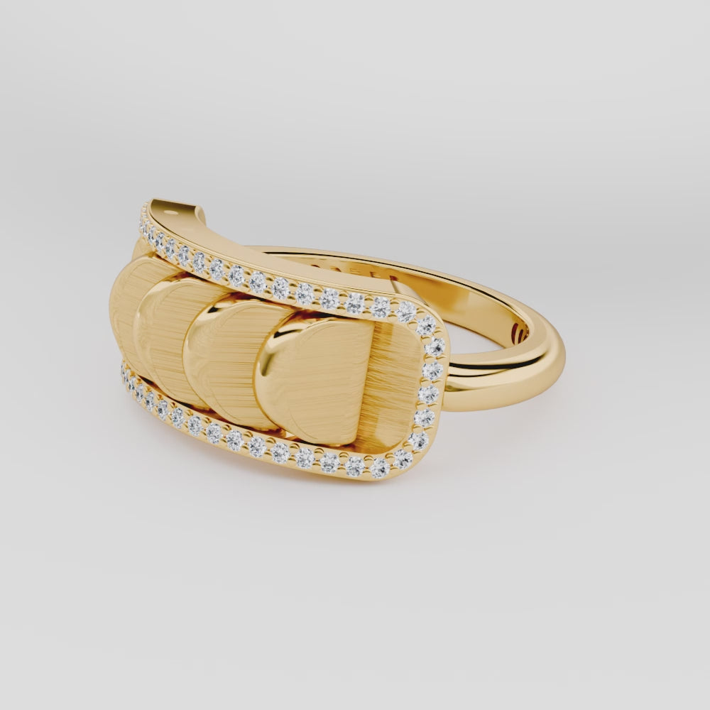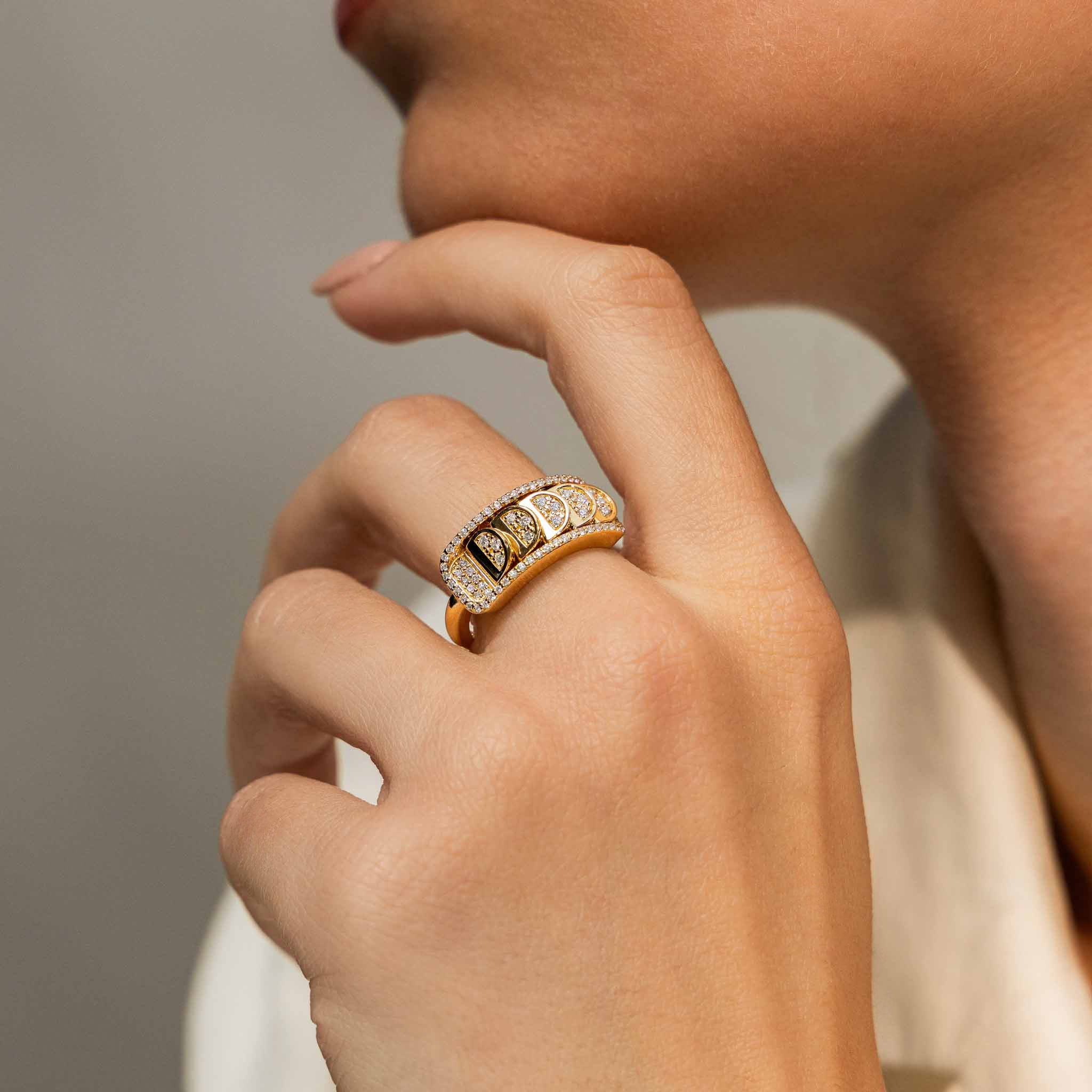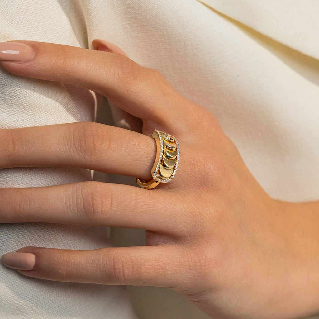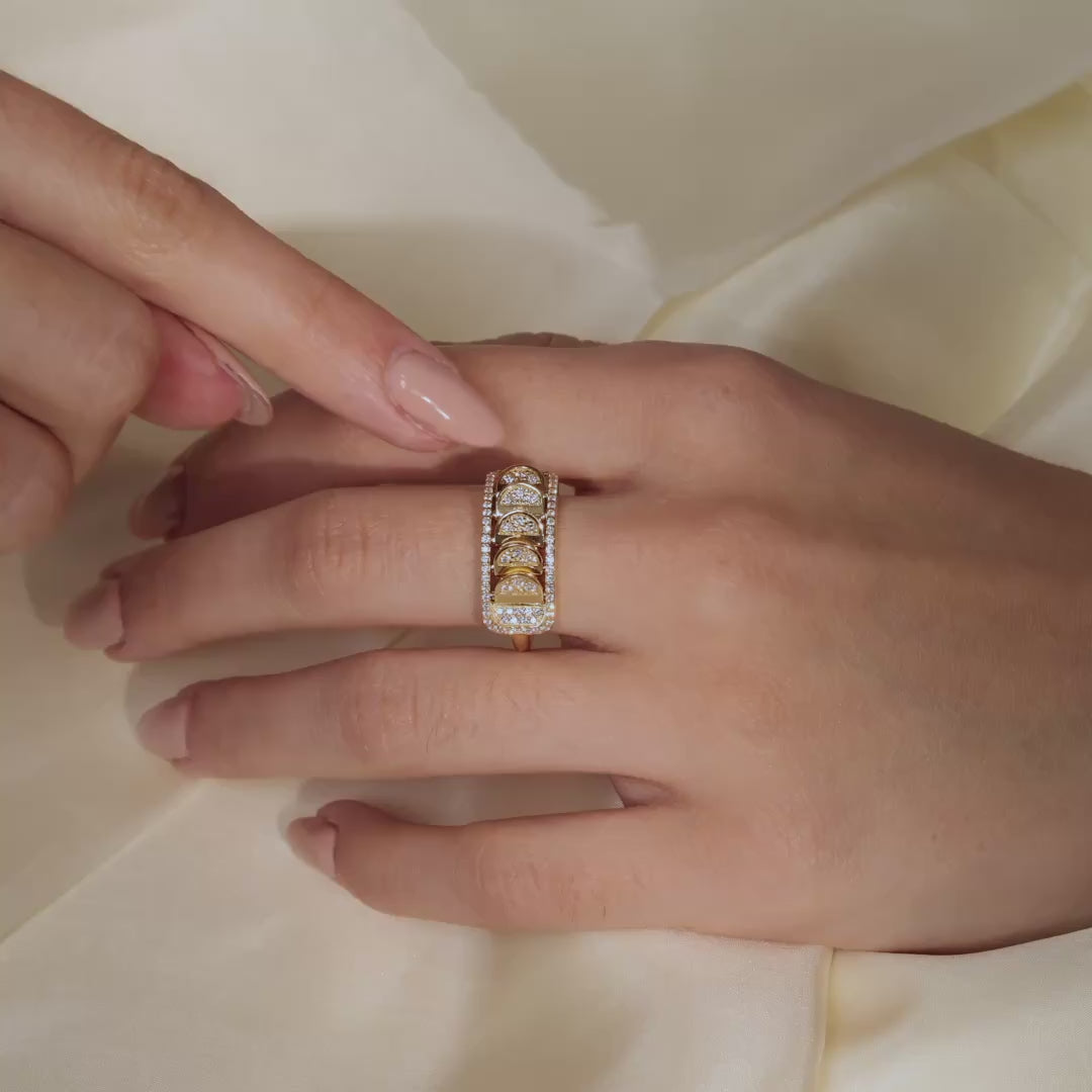 Diamond Ring with Reversible Diamond Pavé Crescents