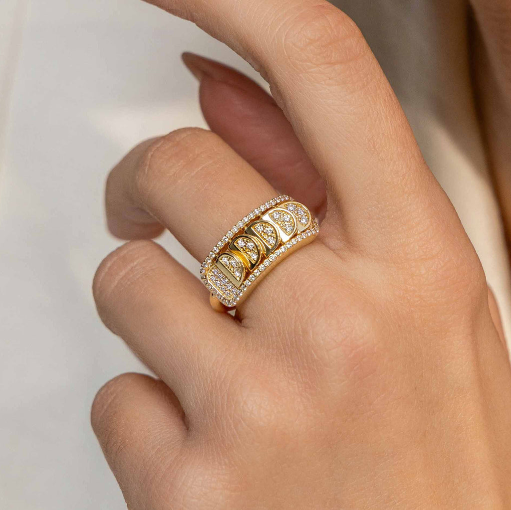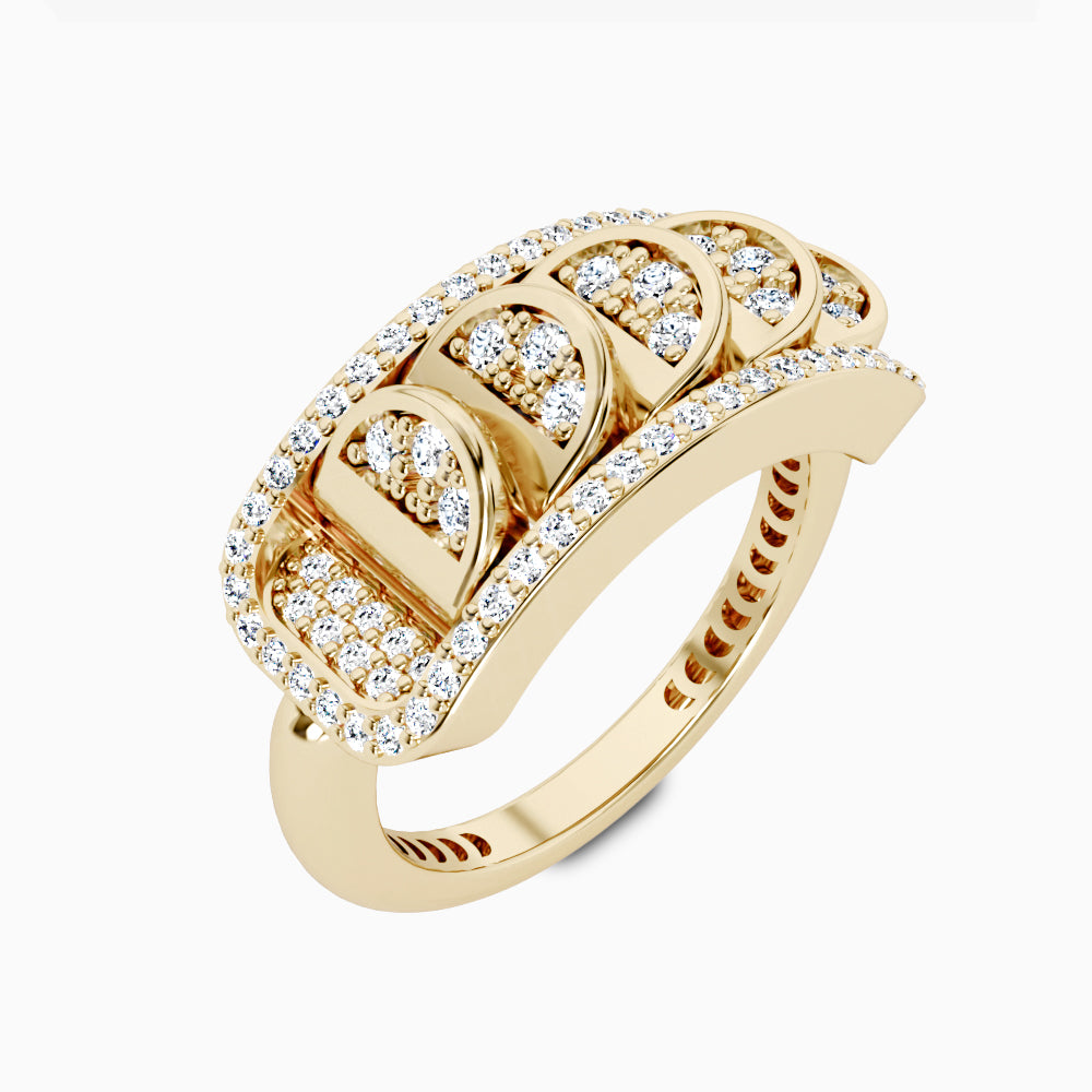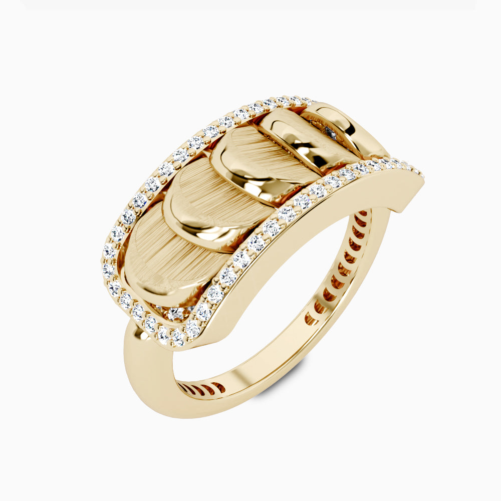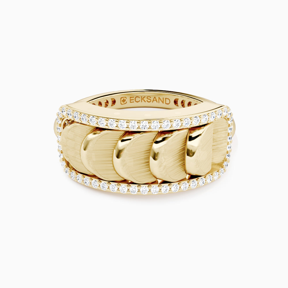 Diamond Ring with Reversible Diamond Pavé Crescents