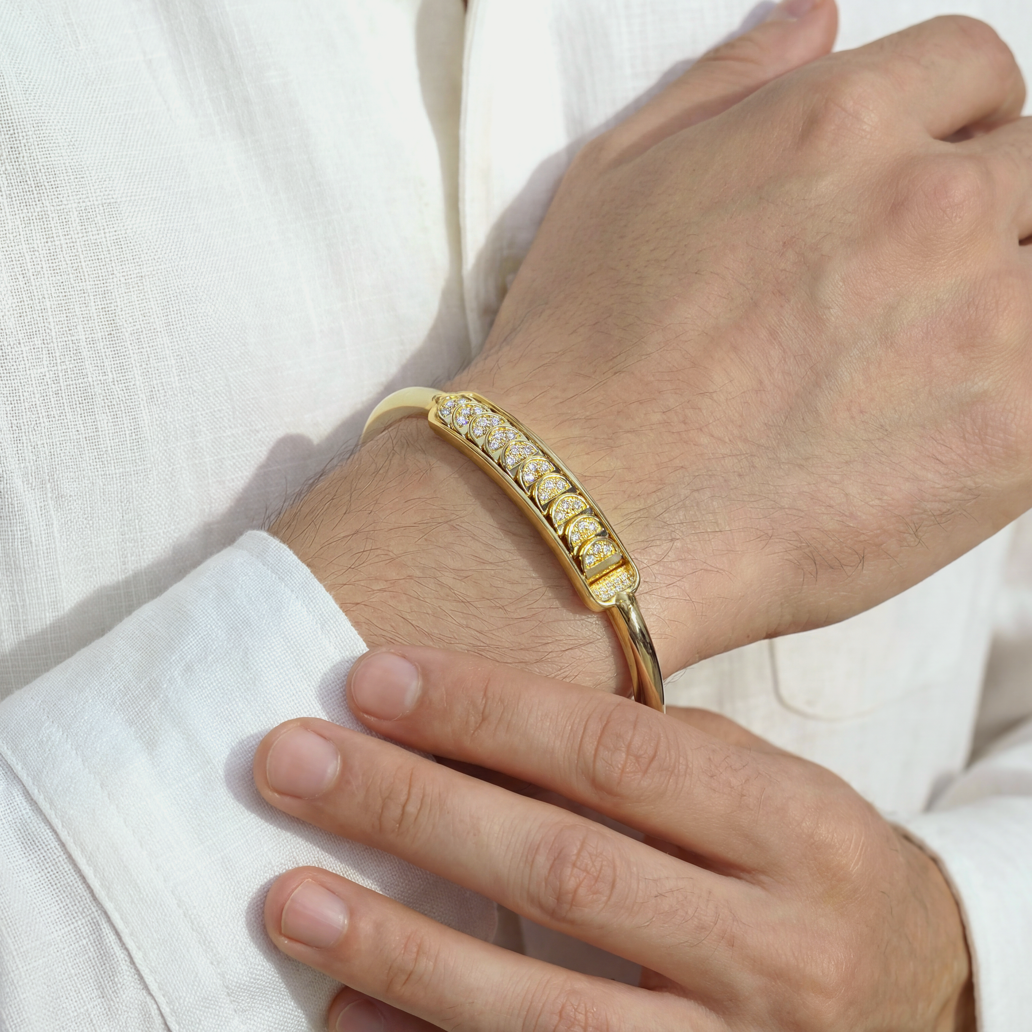 Gold Bangle with Reversible Diamond Pavé Crescents
