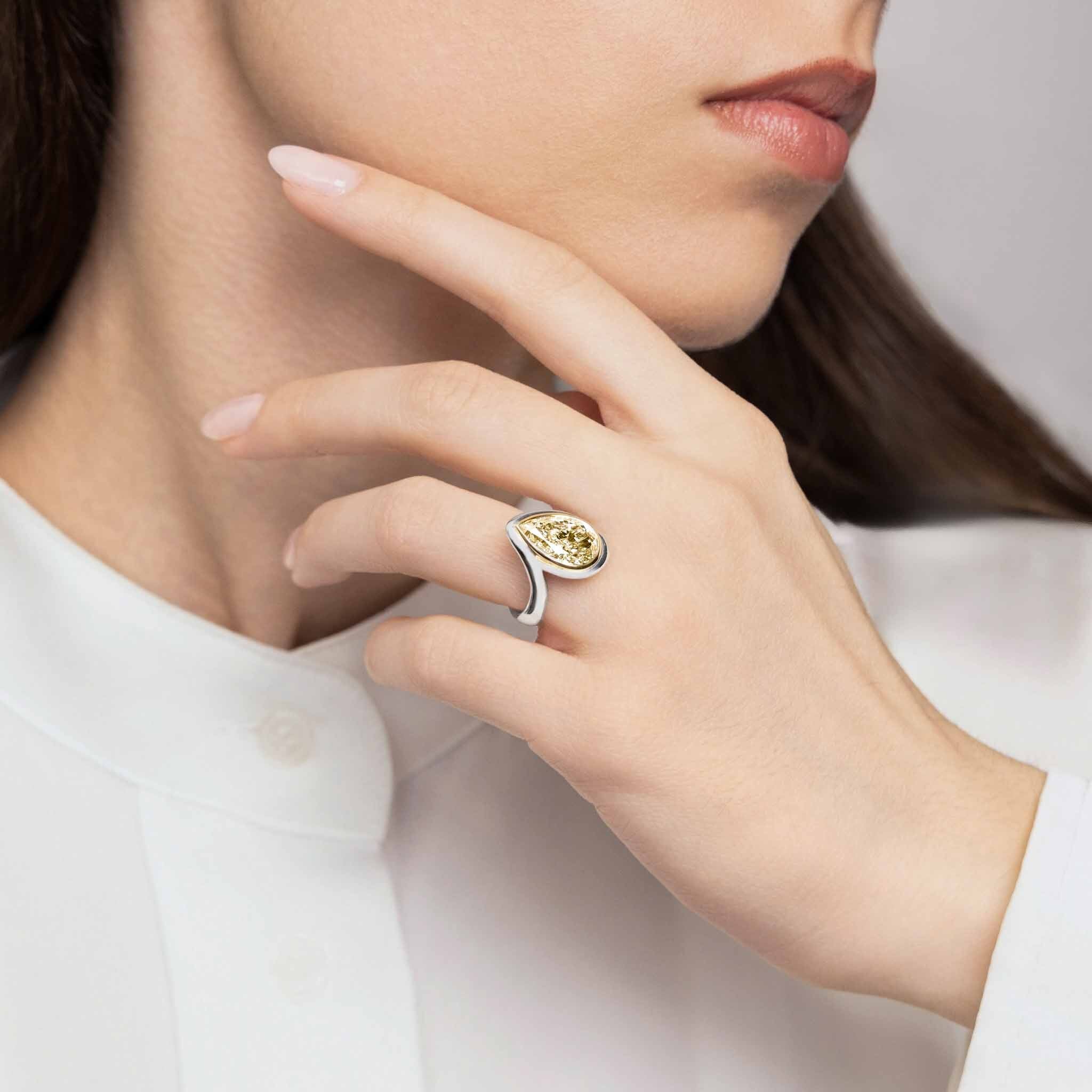 The Curve of Devotion. Designed by Creative Director Erica Bianchini, this Bezel-Set Yellow Diamond Engagement Ring reimagines the cathedral silhouette through the symbolism of the Algerian Love Knot. Entwined at the design’s core lies a sculpted gold heart encircling a discreet diamond. Arches of solid recycled gold intertwine around an ethically-sourced pear-cut yellow diamond in a bezel setting lending protection and luminosity.