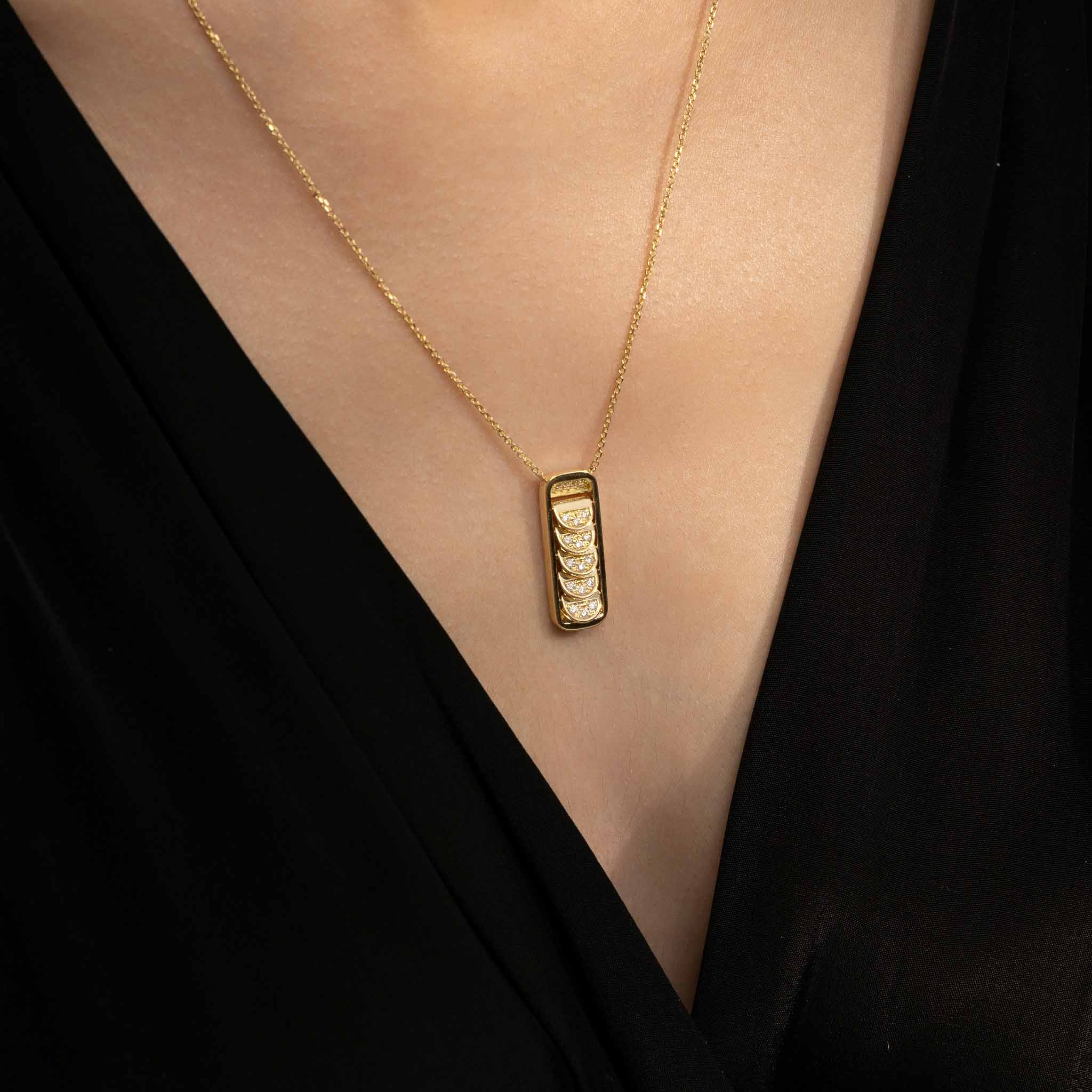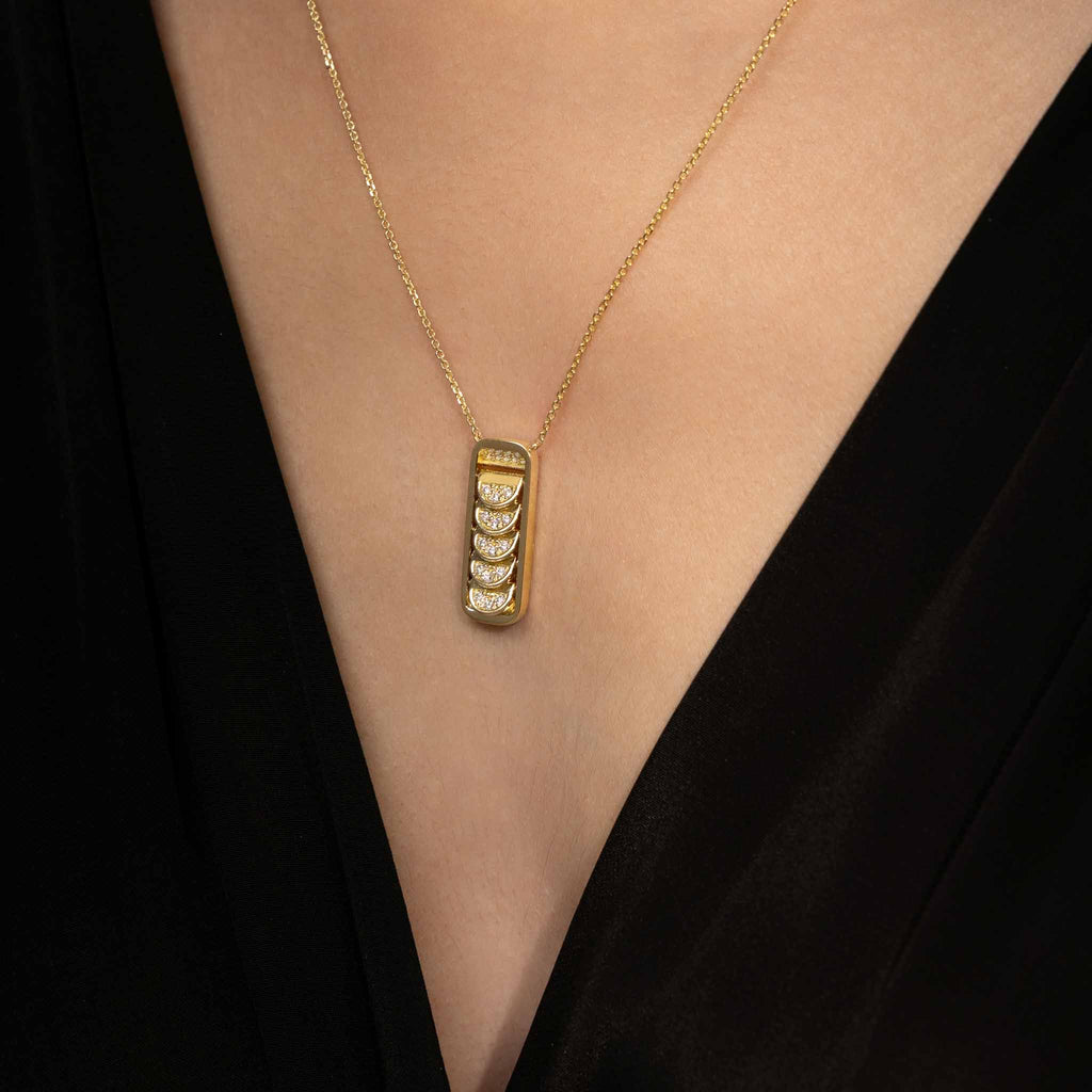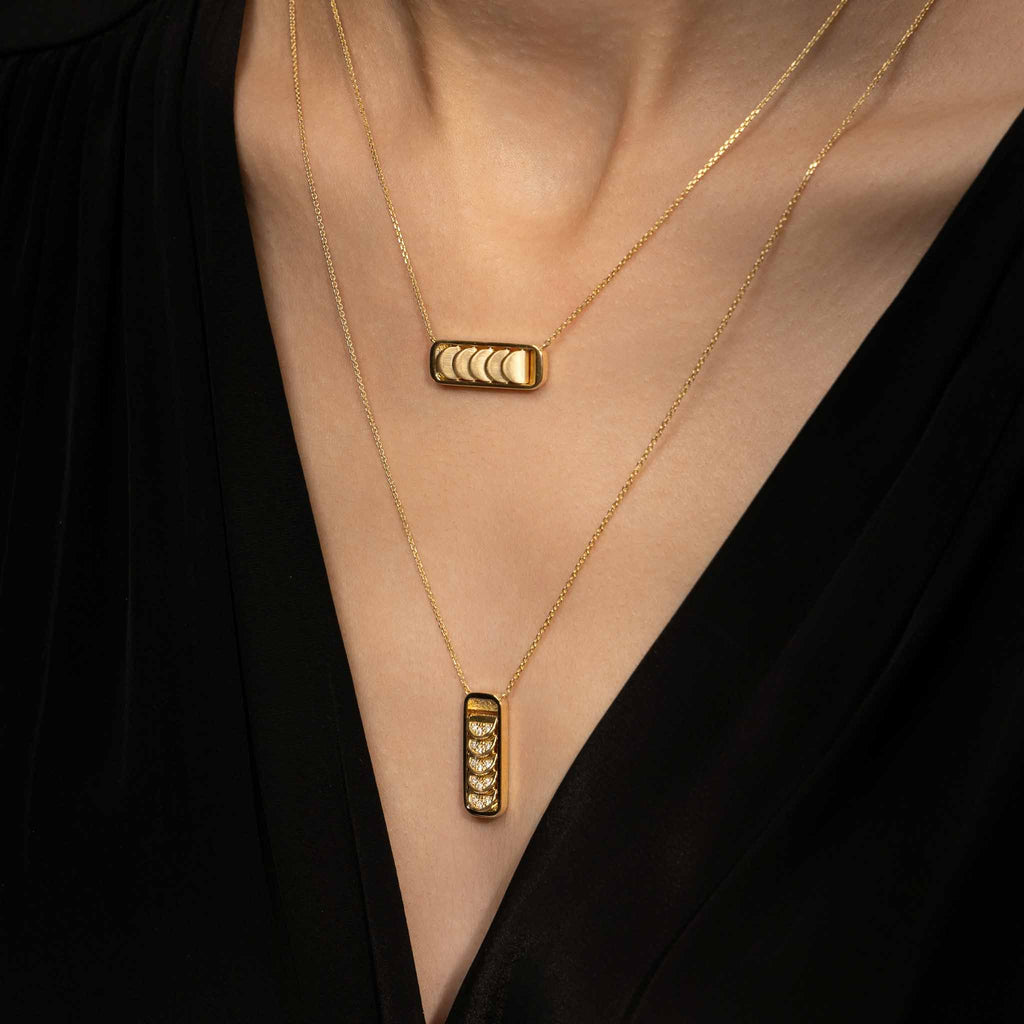 Pendant Necklace with Reversible Diamond Pavé Crescents