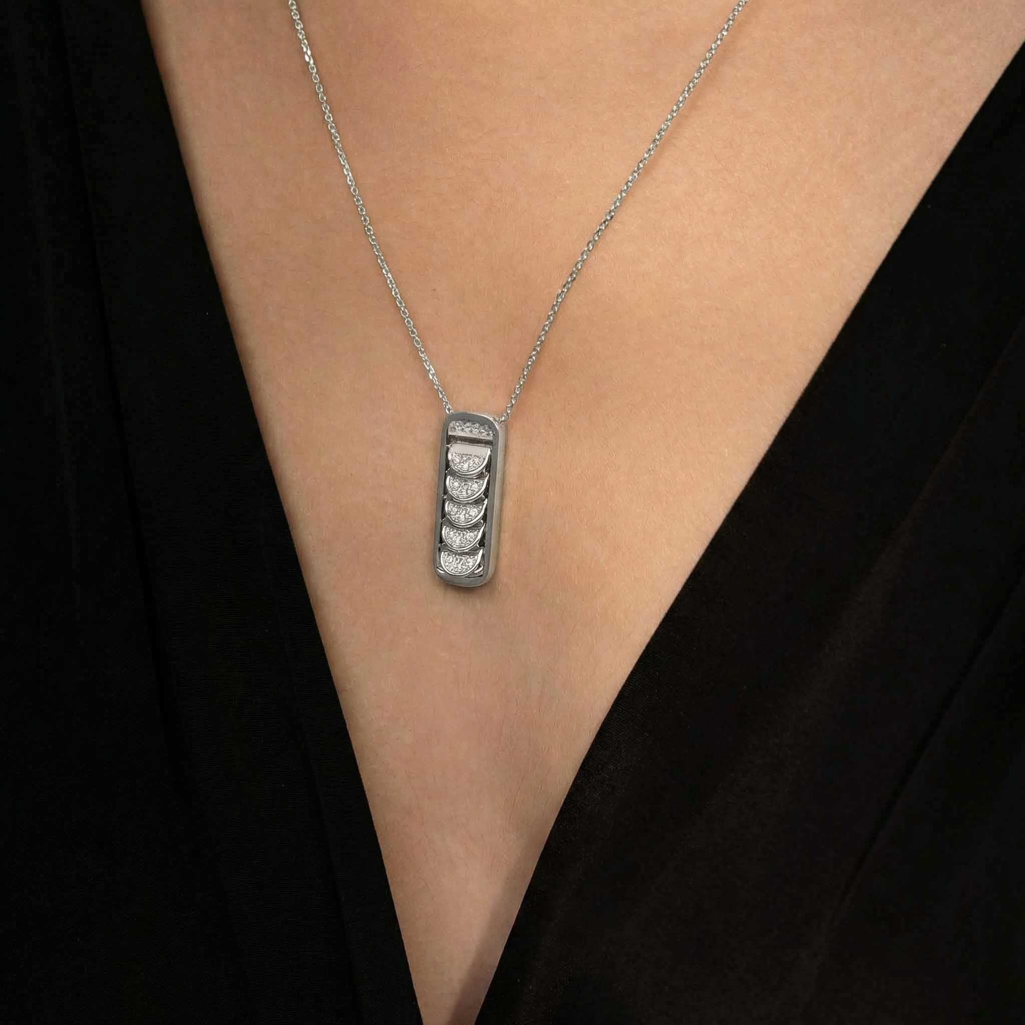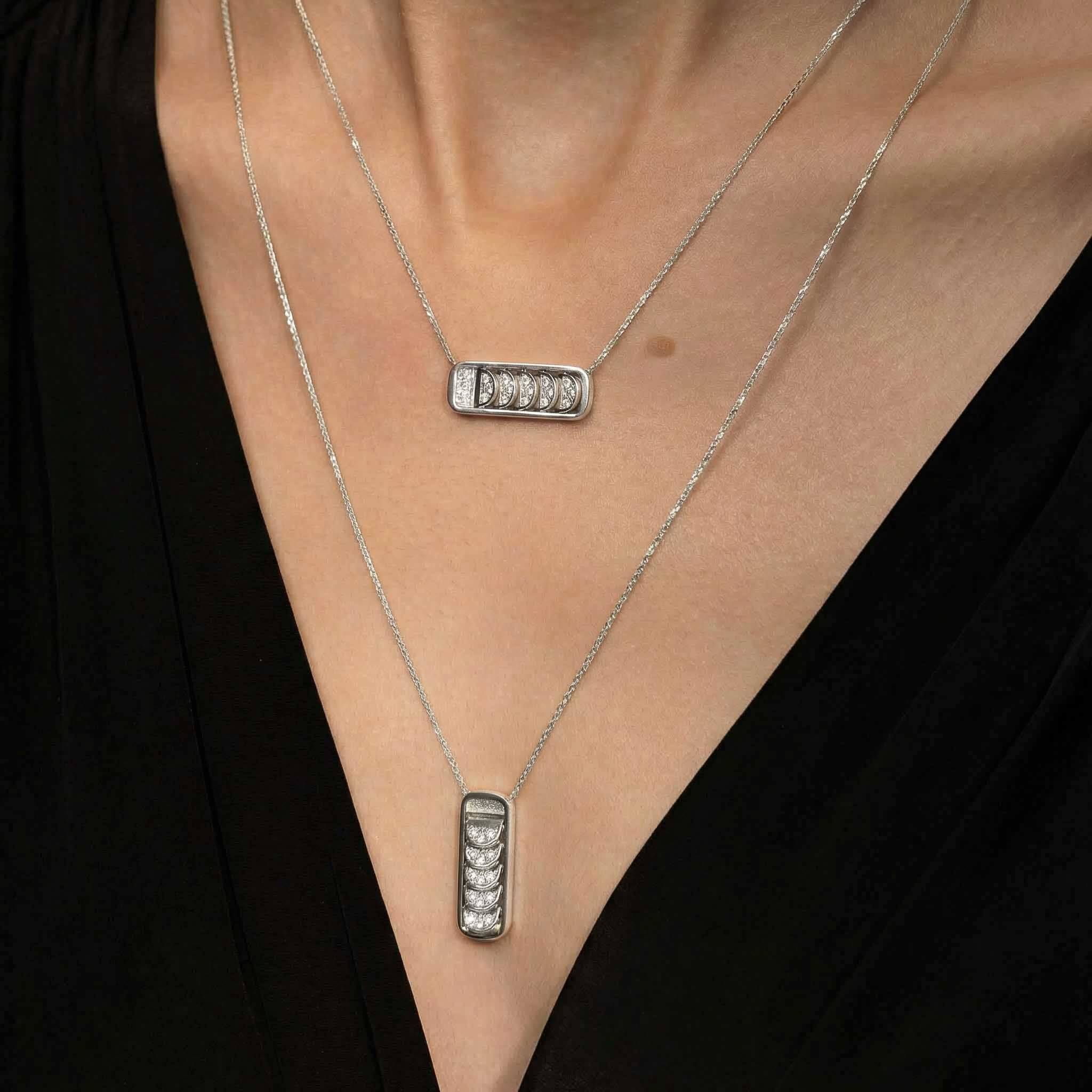 Pendant Necklace with Reversible Diamond Pavé Crescents in White Gold