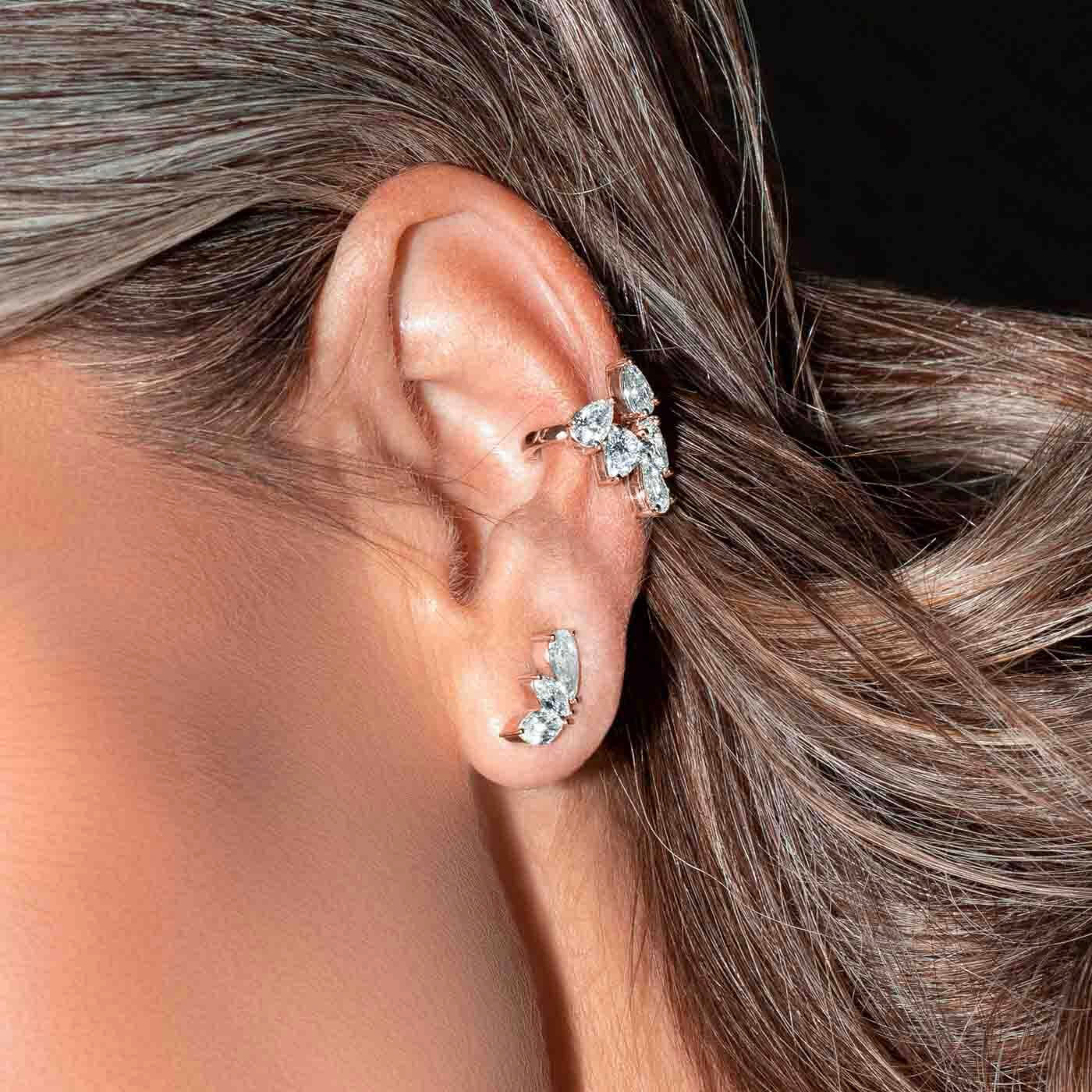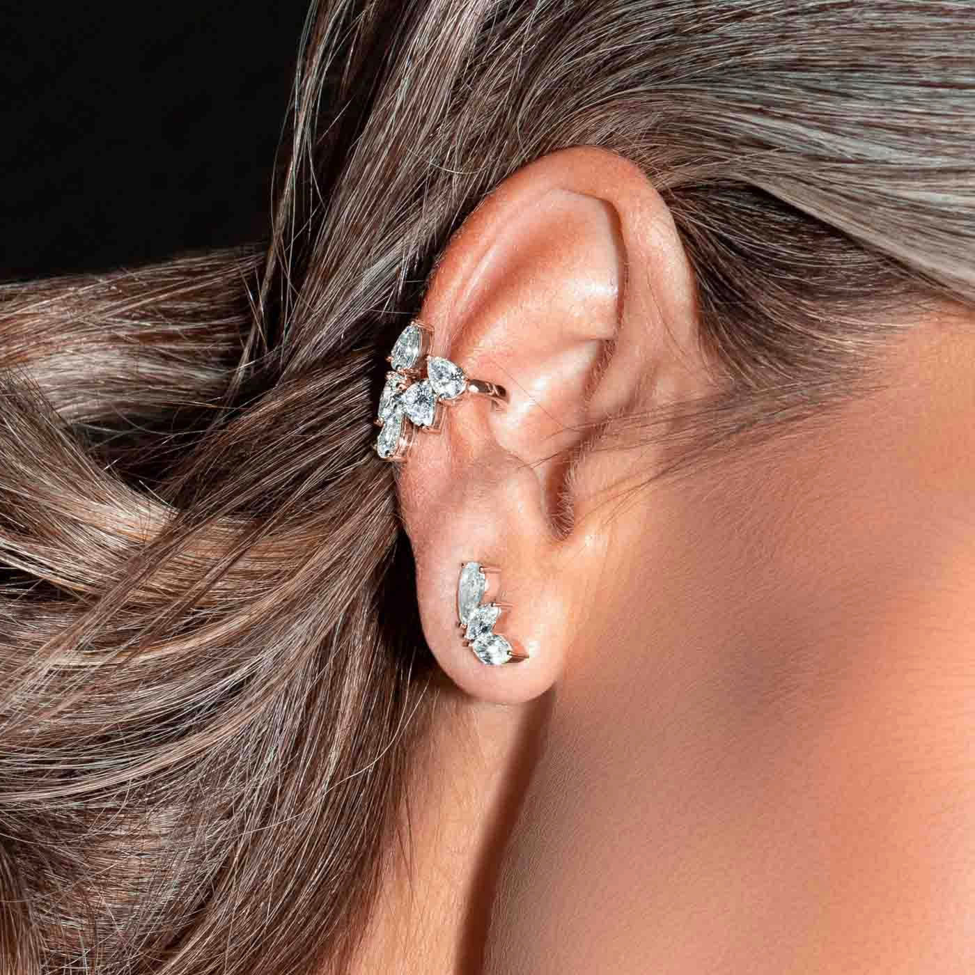 Designed to complete a simple stud (not included), years of Ecksand research and development led to the creation of the ultimate conch earring system of comfort and security without a conch piercing. Striking a perfect balance between simplicity and opulence, this single crawler earring draws attention towards the eyes.