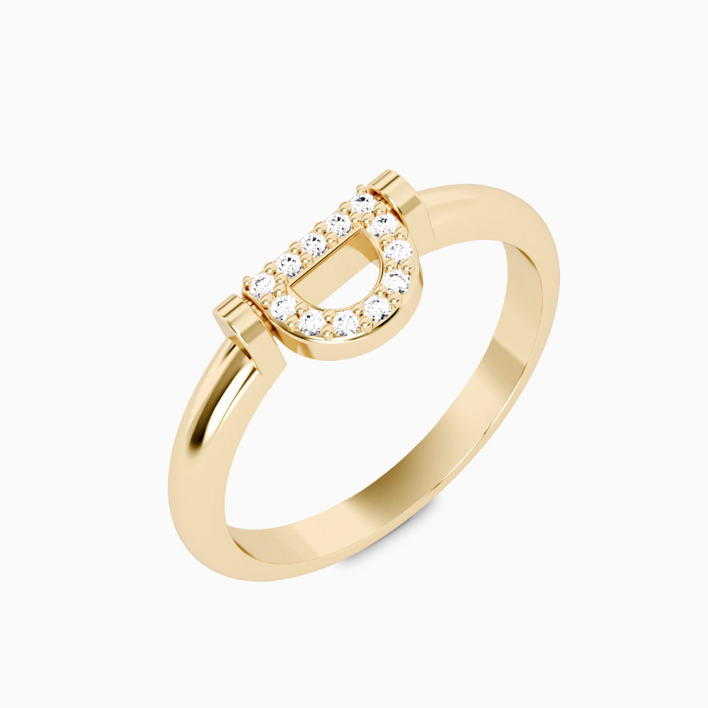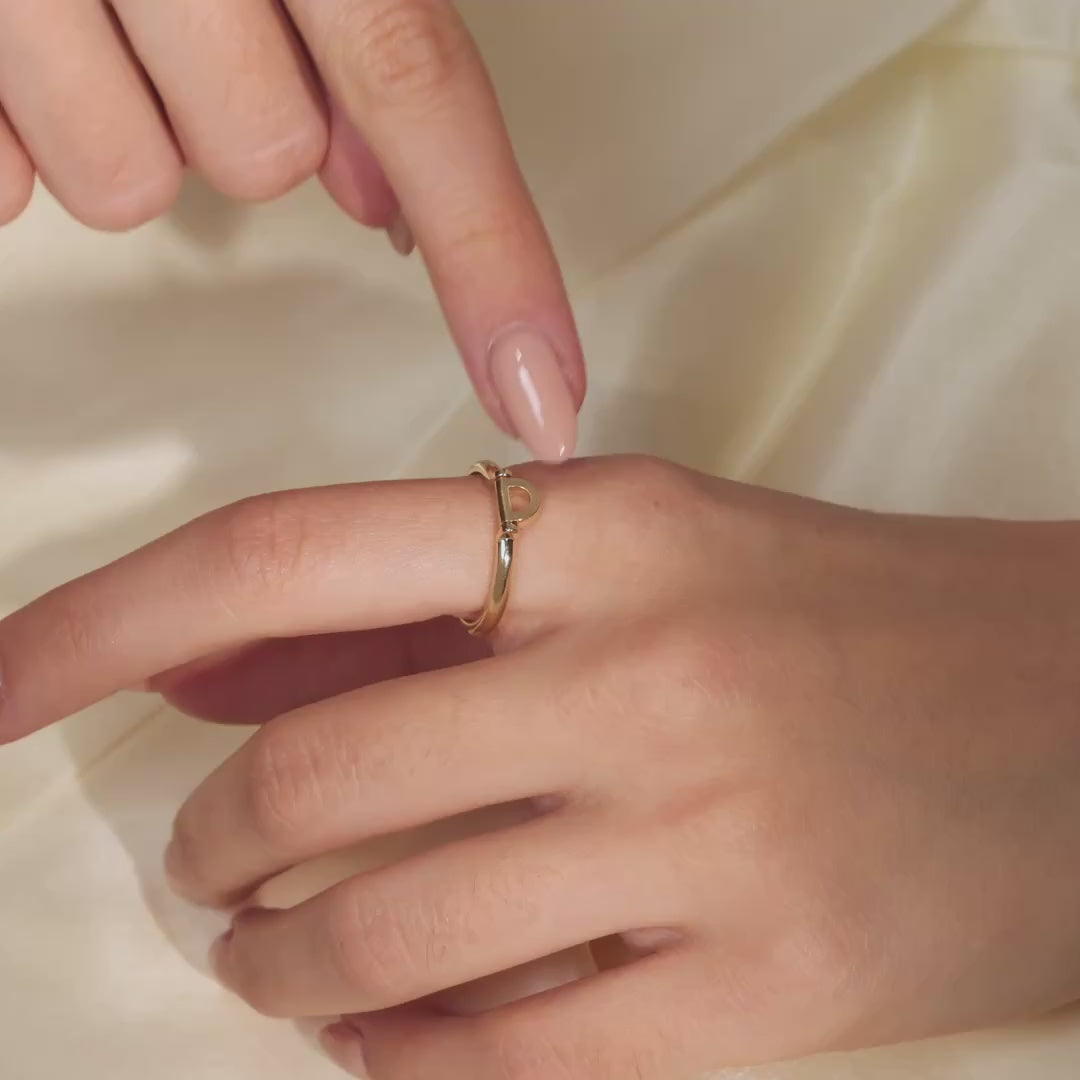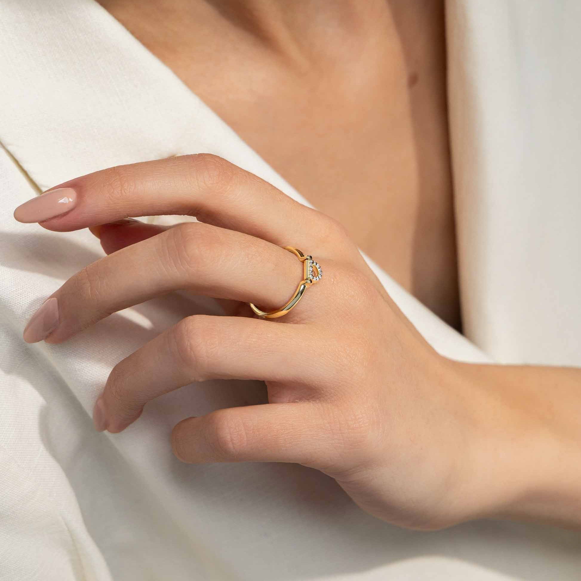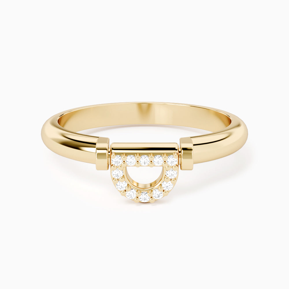 Stackable Gold Ring with Reversible Diamond Pavé Crescent