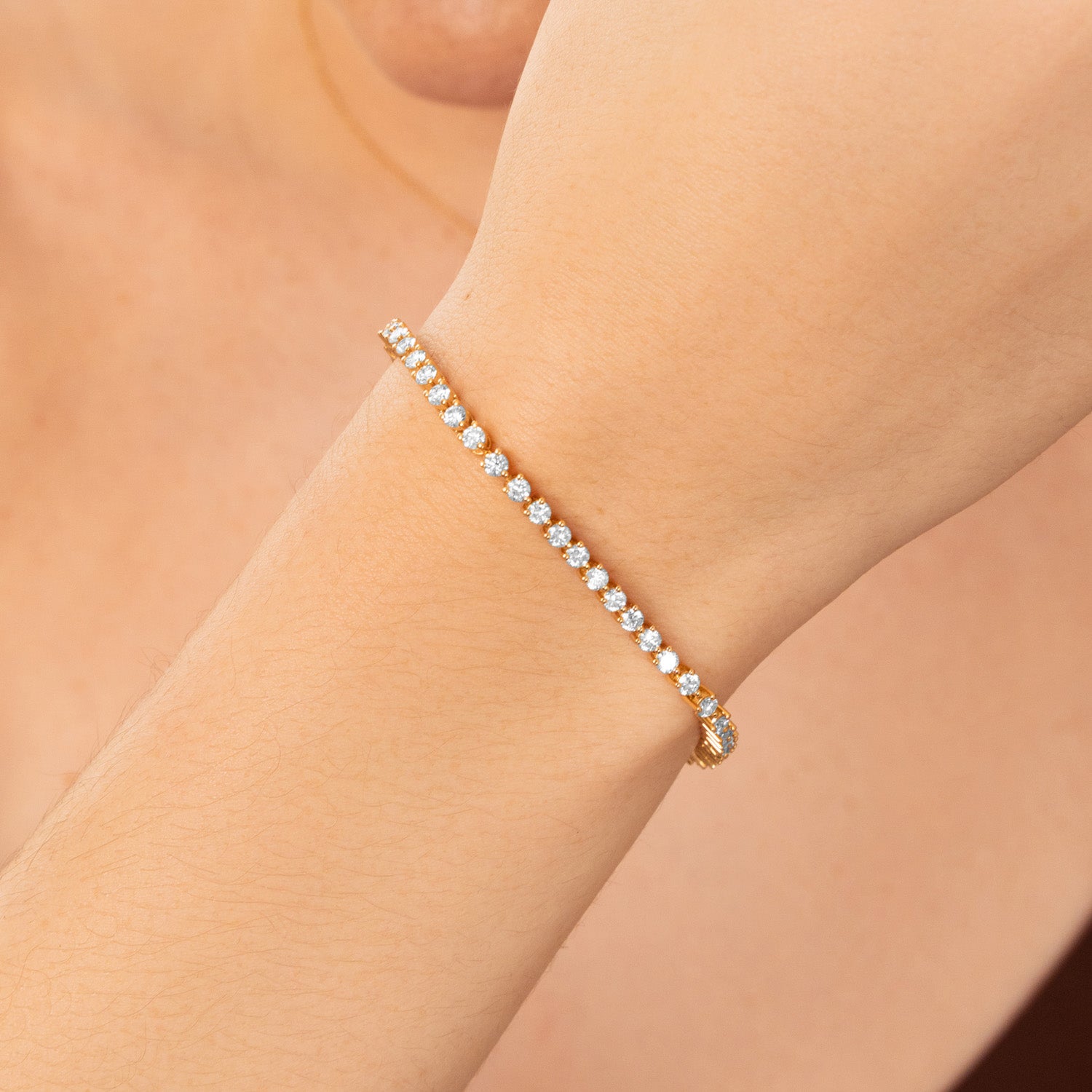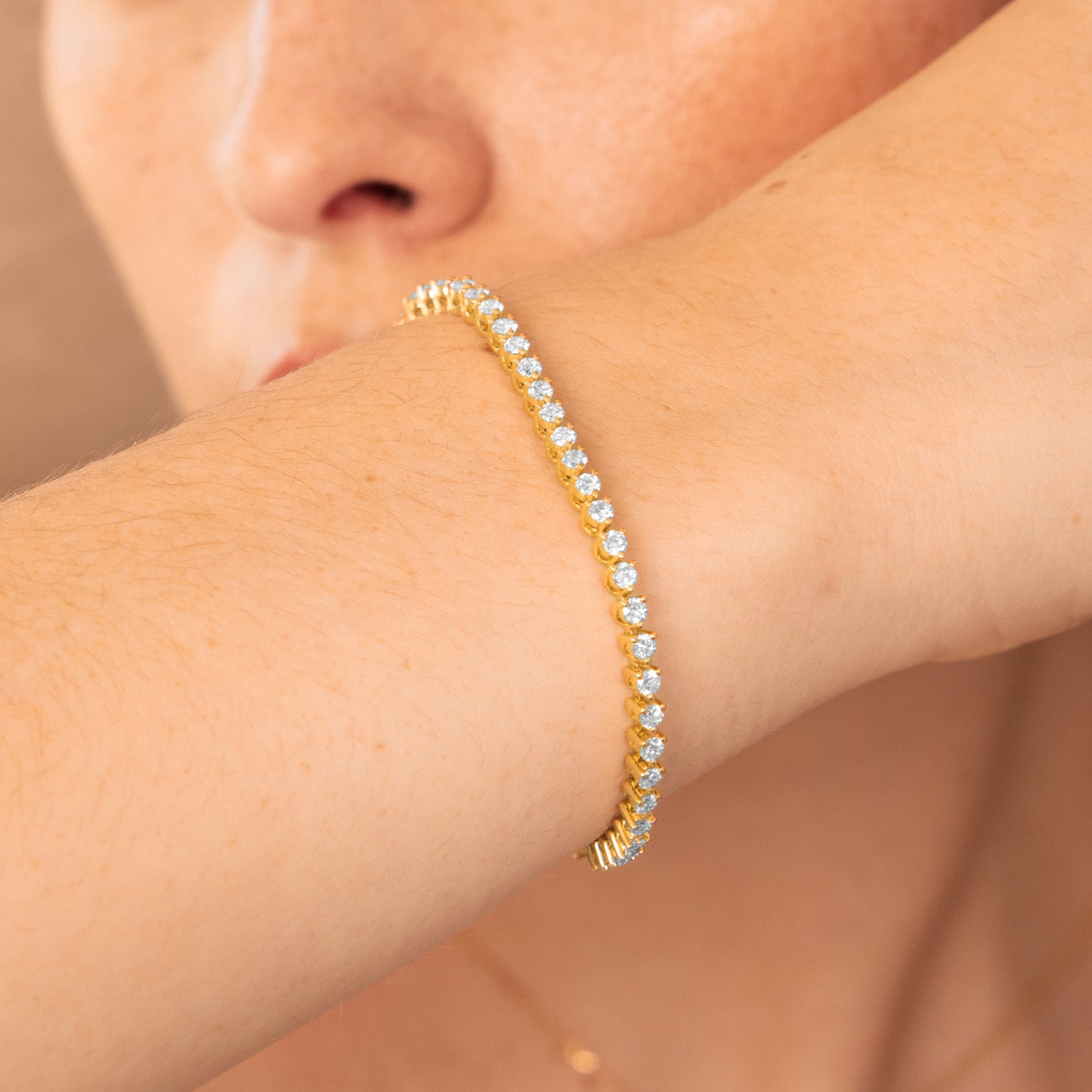 A sight to behold, this Three-Prong Diamond Tennis Bracelet draws inspiration from the splendour of old-world elegance. Each ethical diamond is adorned with utmost care and attention by Ecksand's team of highly skilled craftspeople for a mesmerizing result that stays true to its promise to last forever.