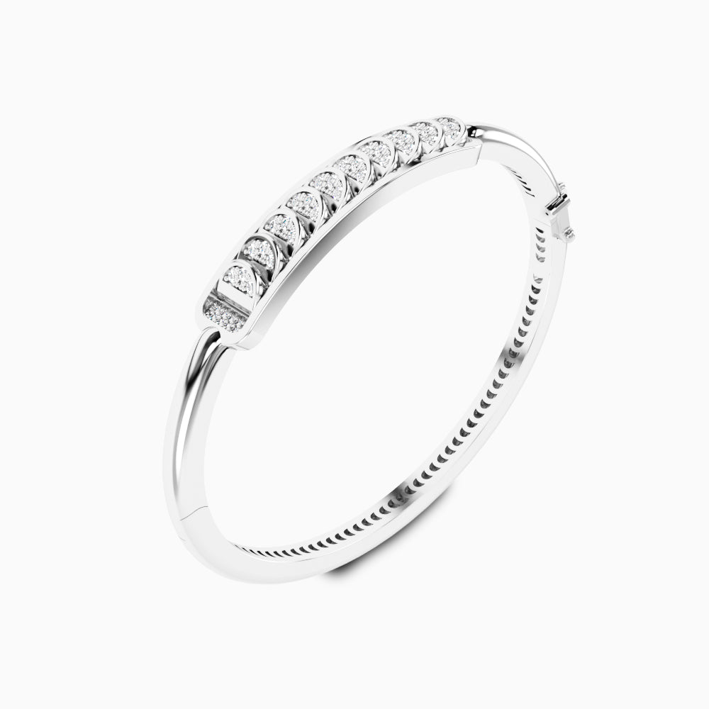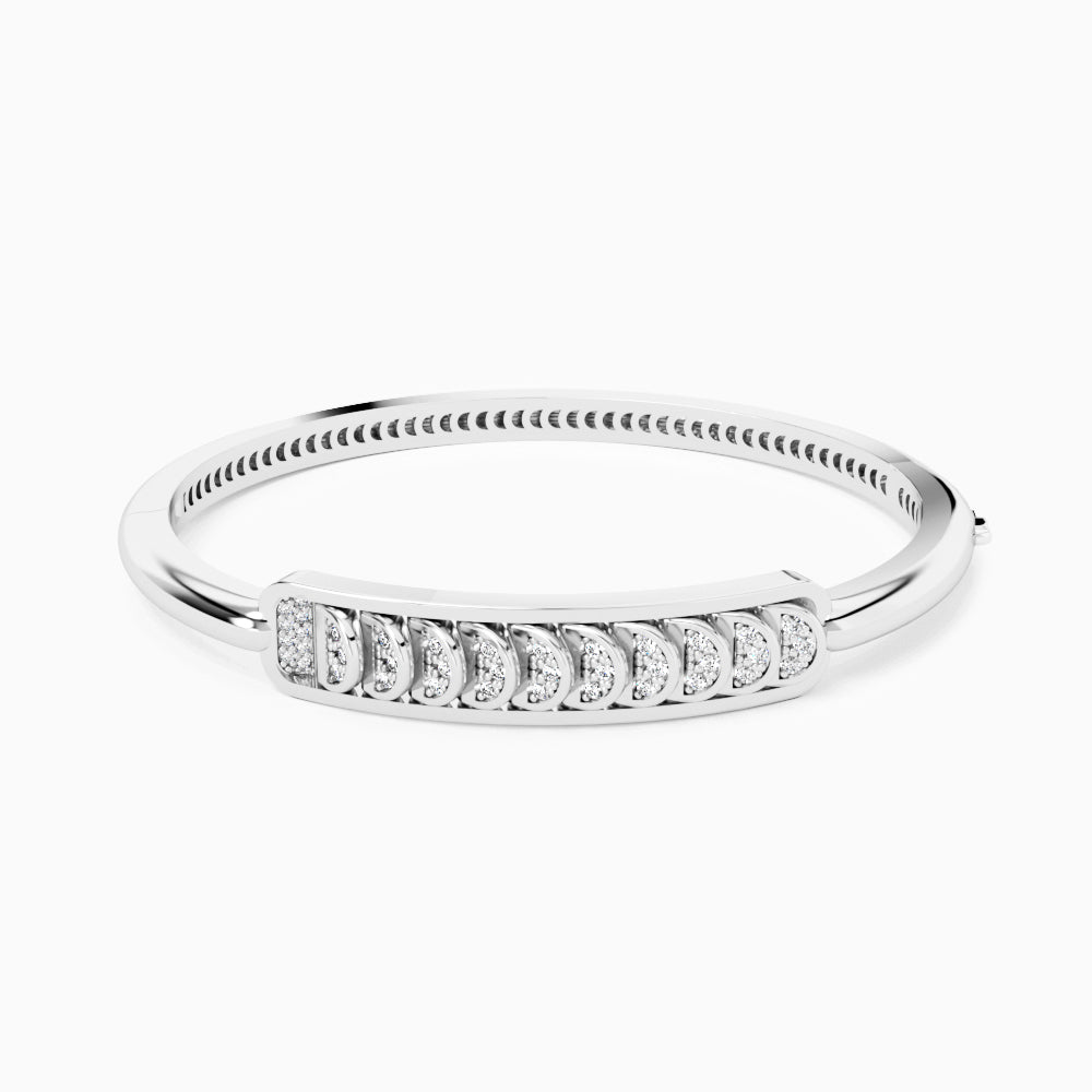 White Gold Bangle with Reversible Diamond Pavé Crescents