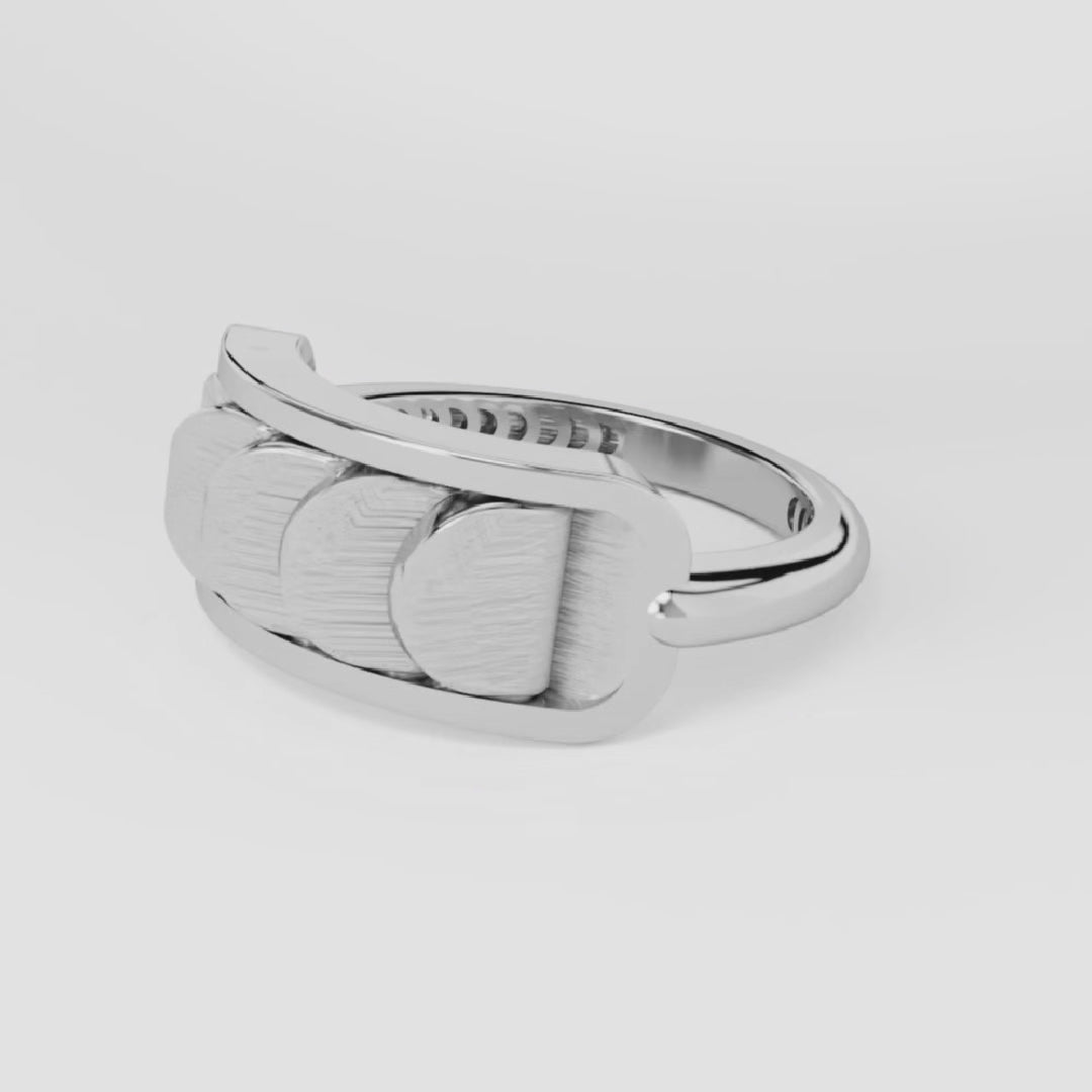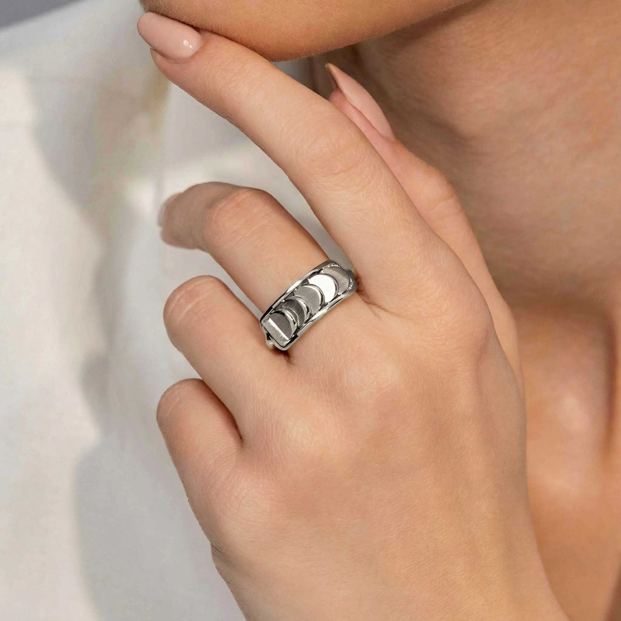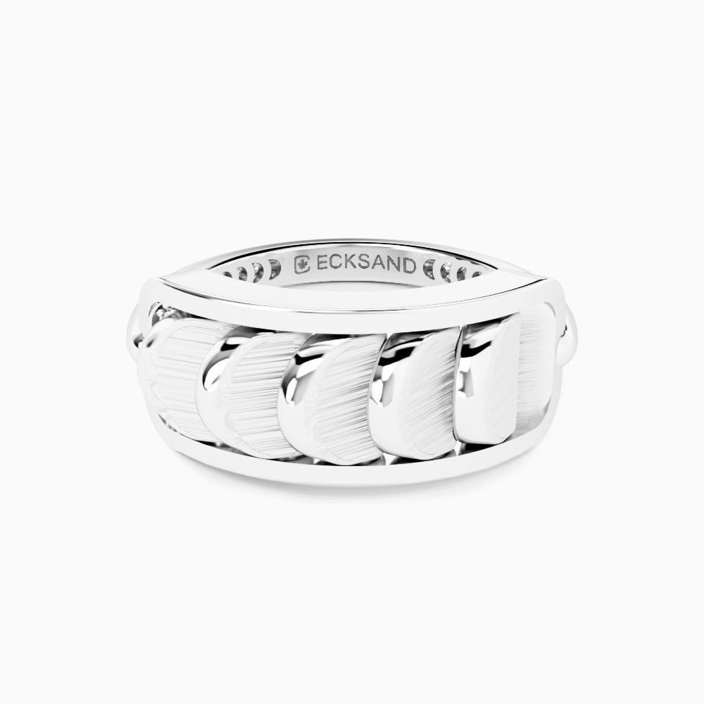 This White Gold Ring with Reversible Diamond Pavé Crescents shifts with you. The signature crescent motif flips seamlessly as the reversible mechanism reveals either diamond pavé brilliance or sculpted brushed white gold.