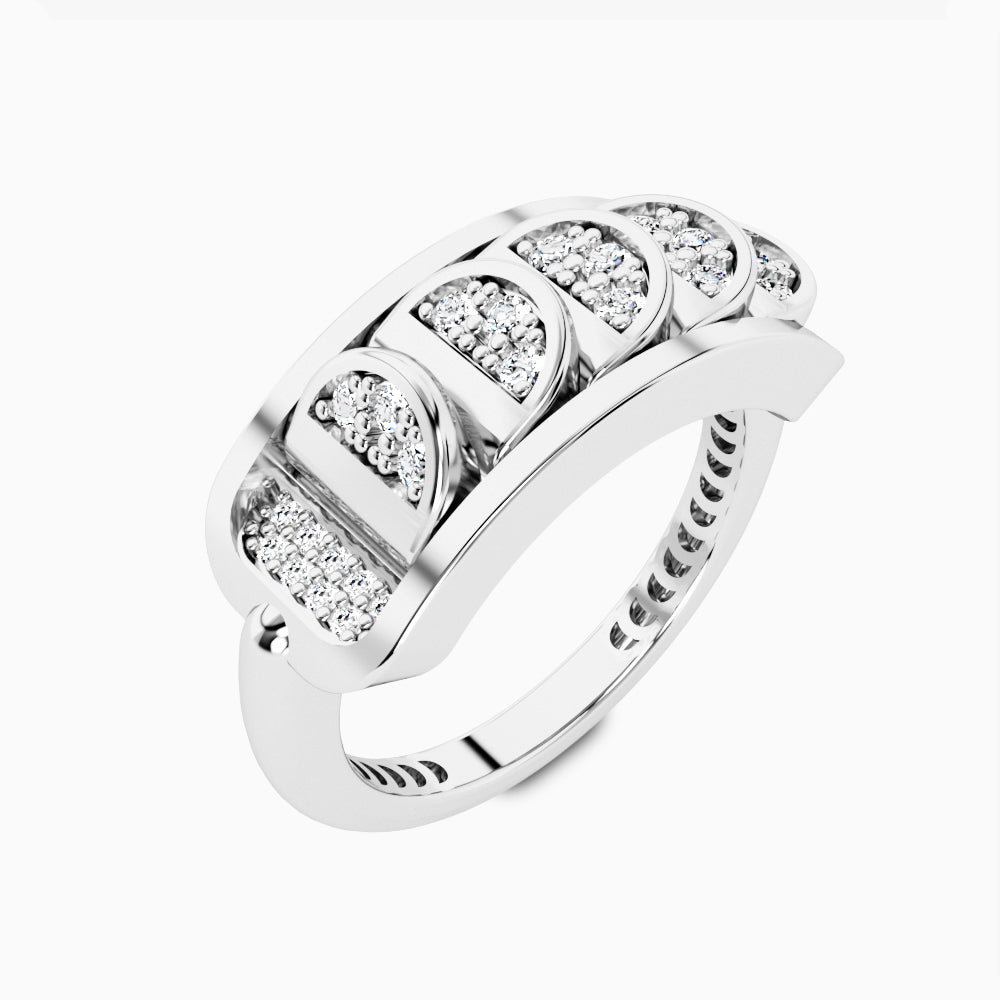 White Gold Ring with Reversible Diamond Pavé Crescents